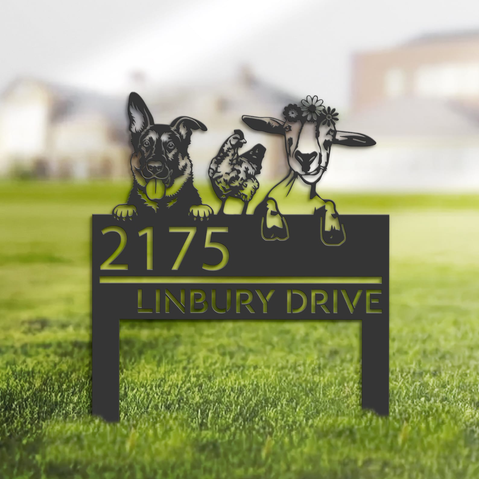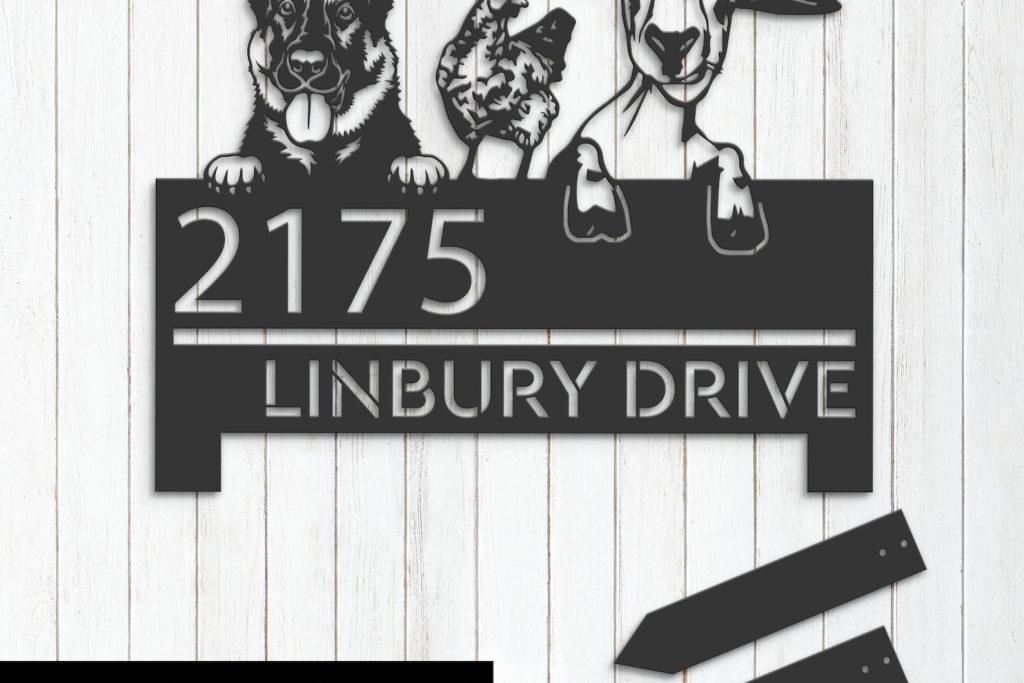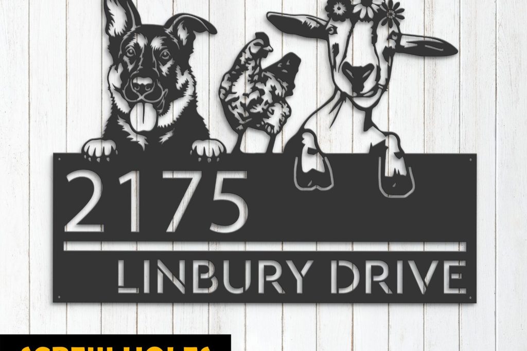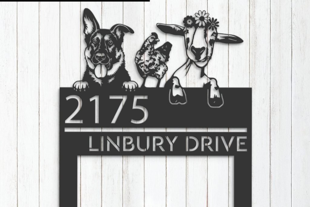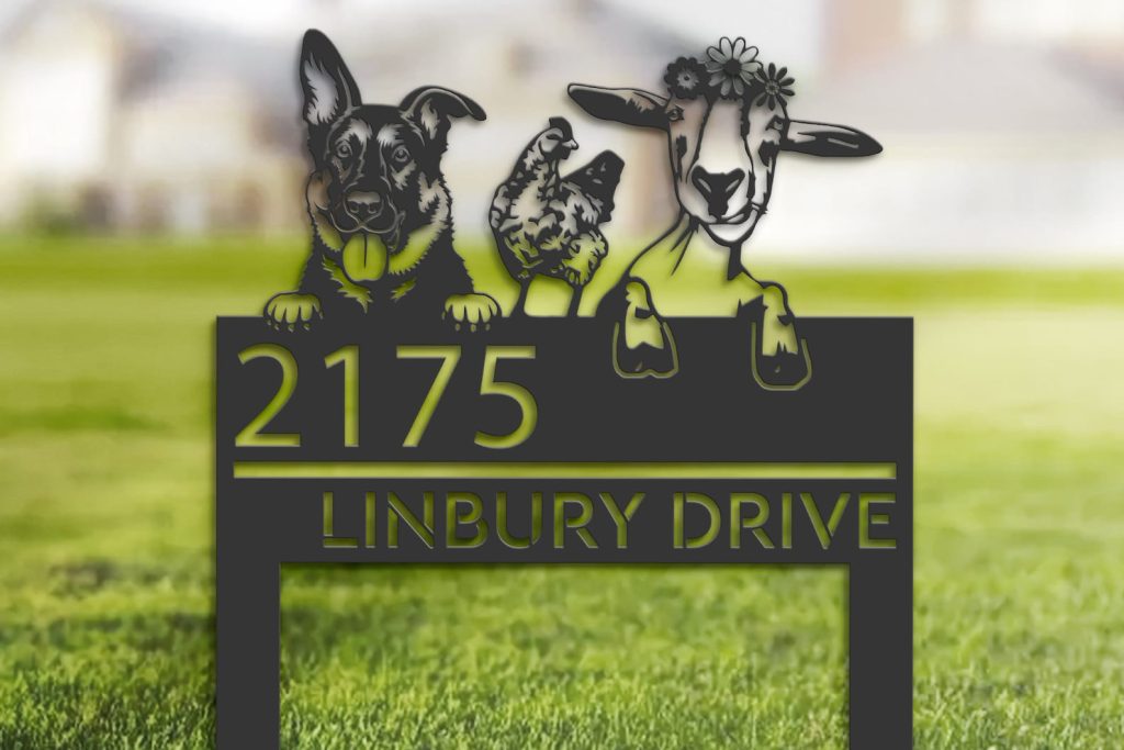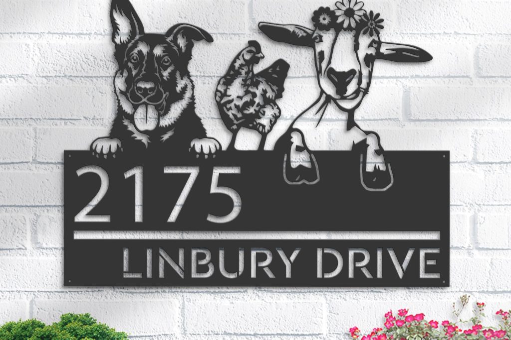 Shepherd Chicken Goat Sign – Custom Metal Address Decor