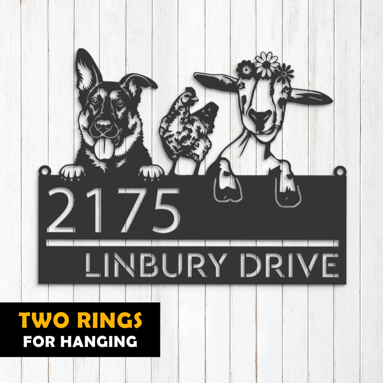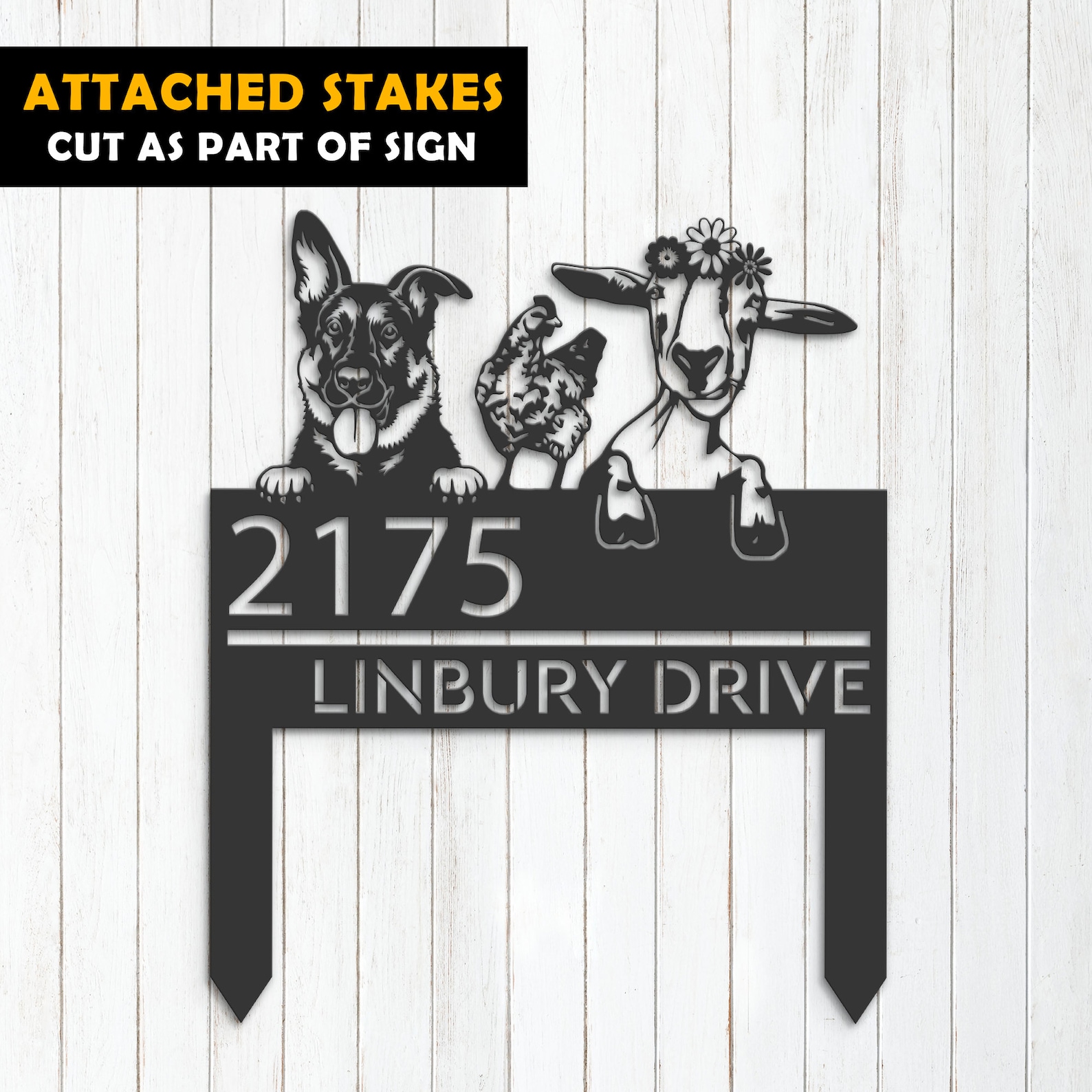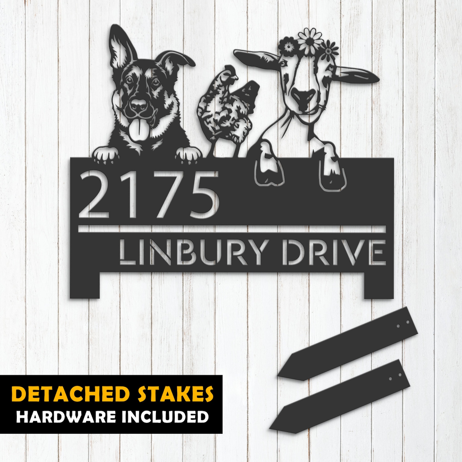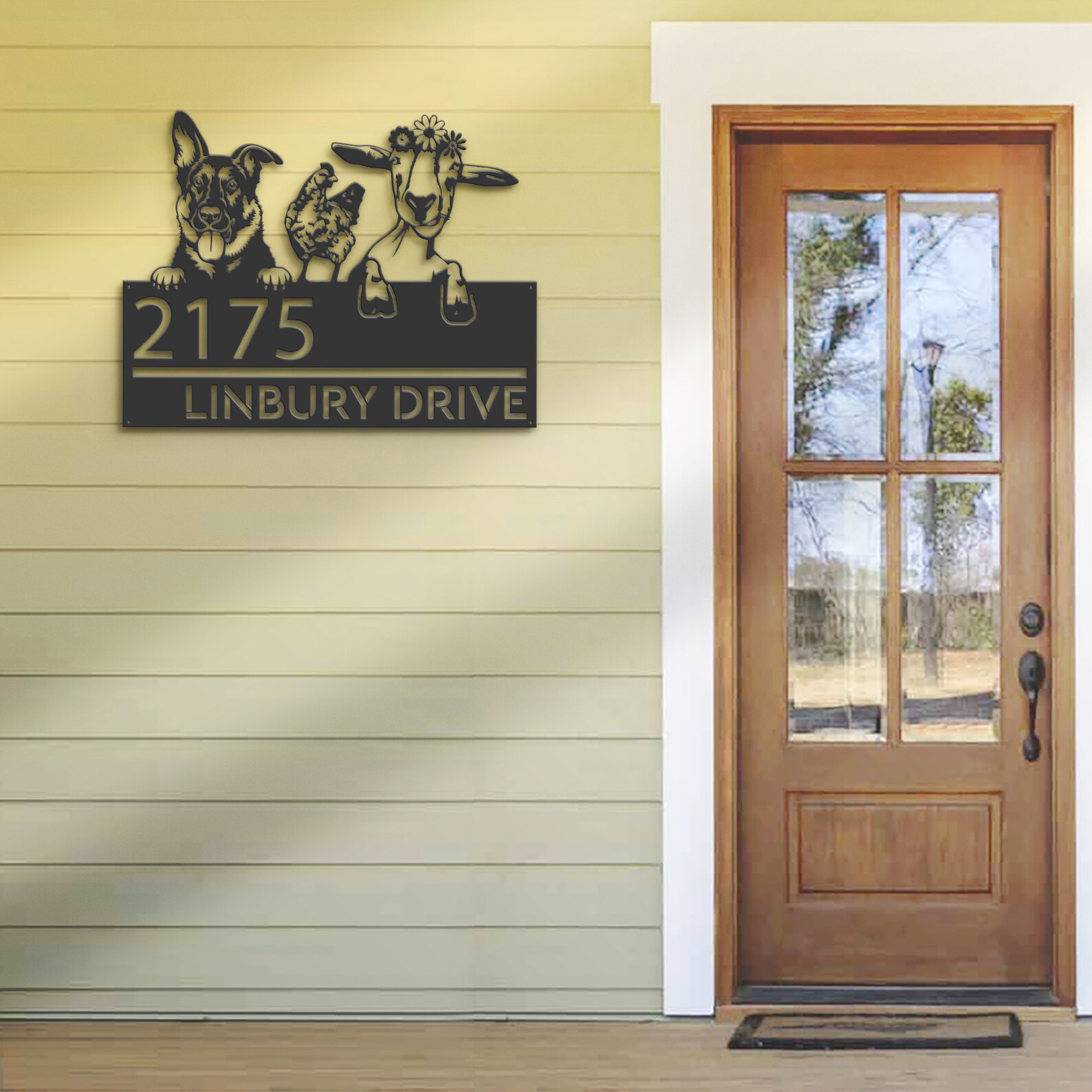 Shepherd Chicken Goat Sign – Custom Metal Address Decor