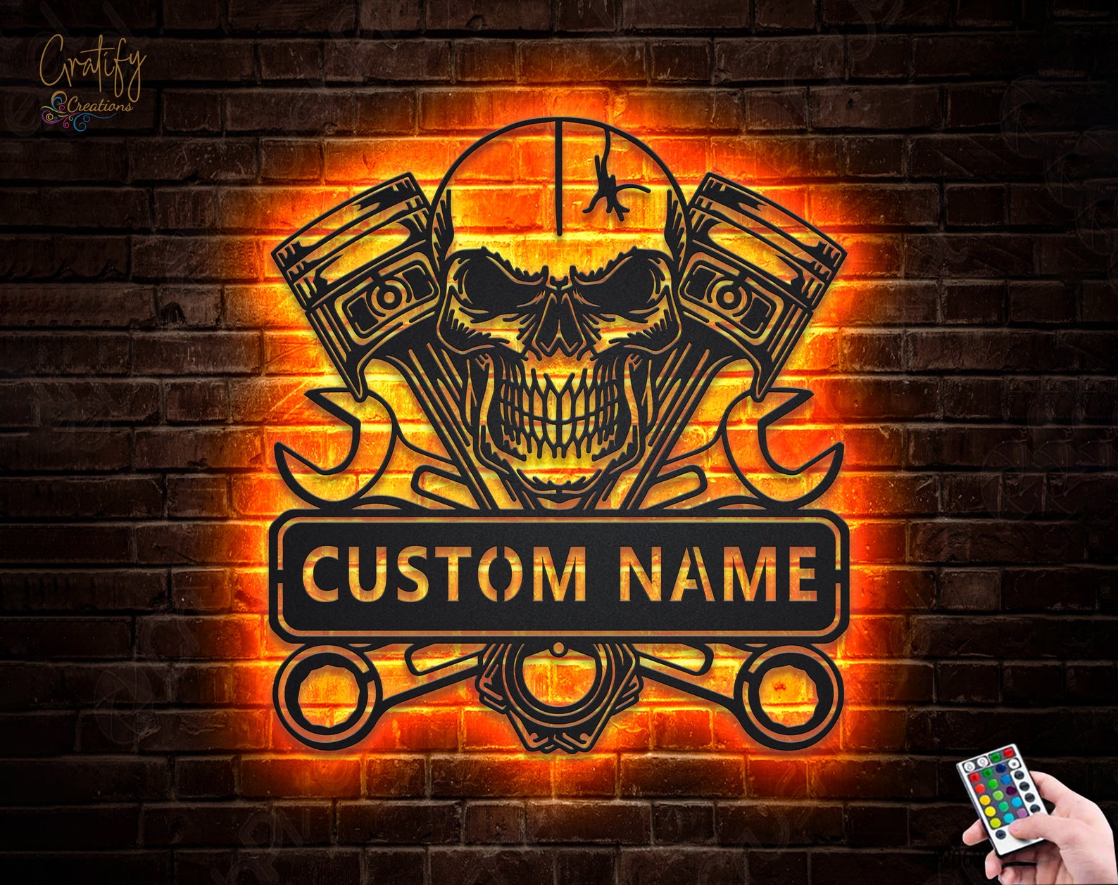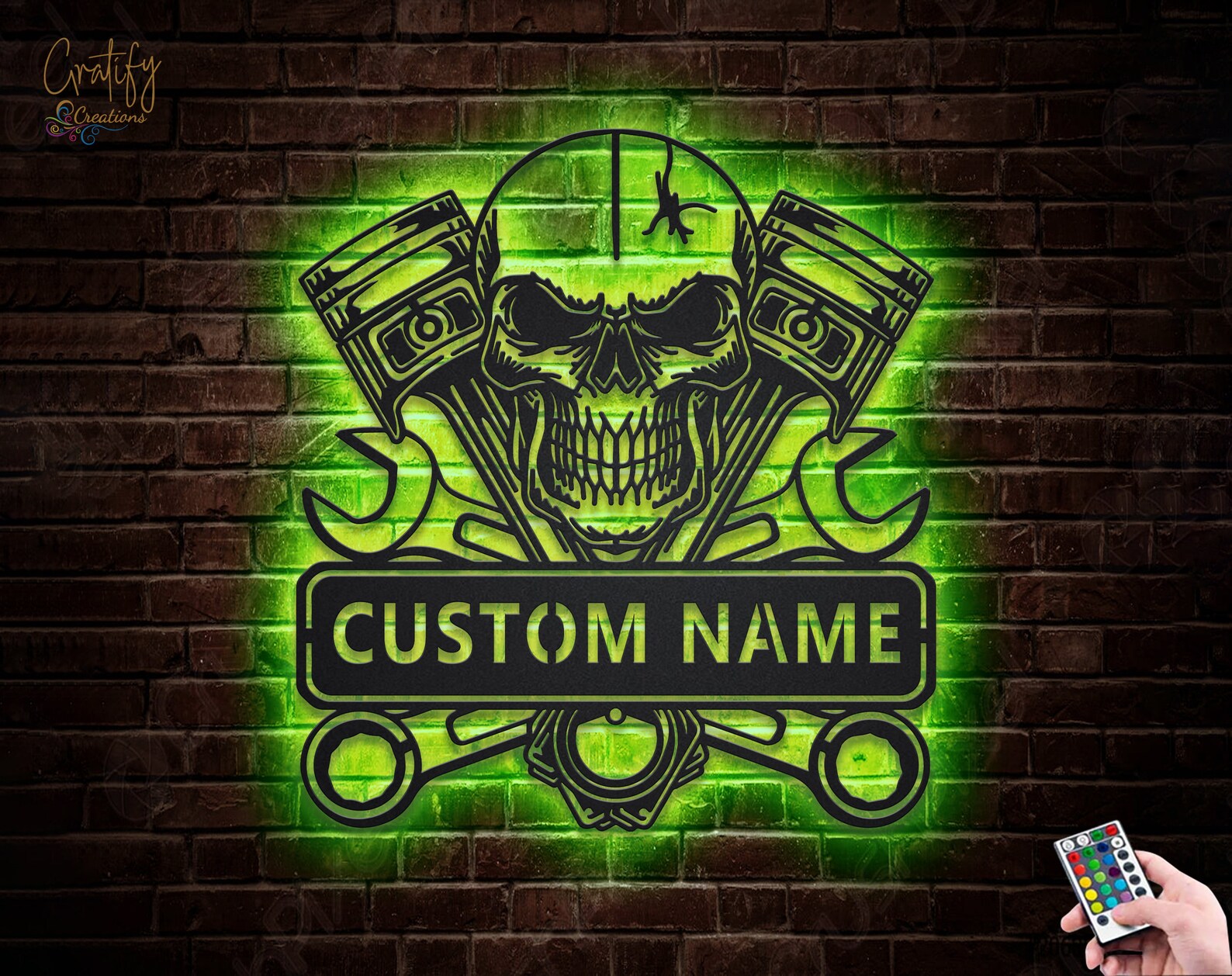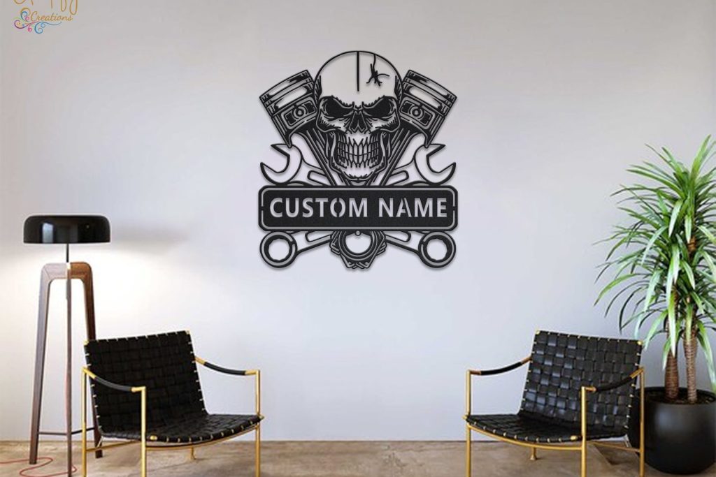 Looking for a unique and eye-catching way to decorate your garage or workshop? Look no further than our Skull Garage Metal Wall Art LED Light Custom Workshop Name Sign!