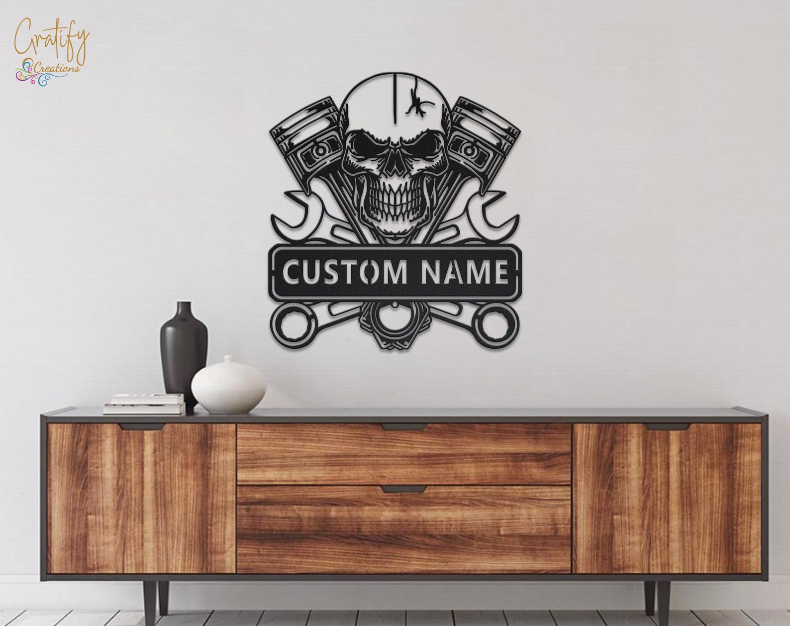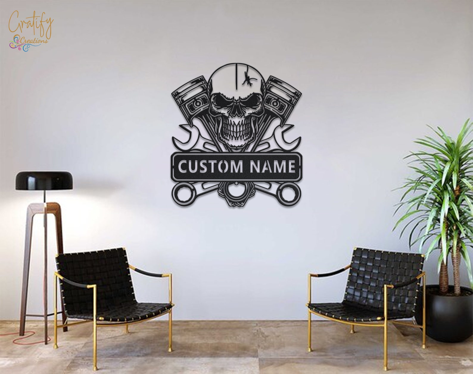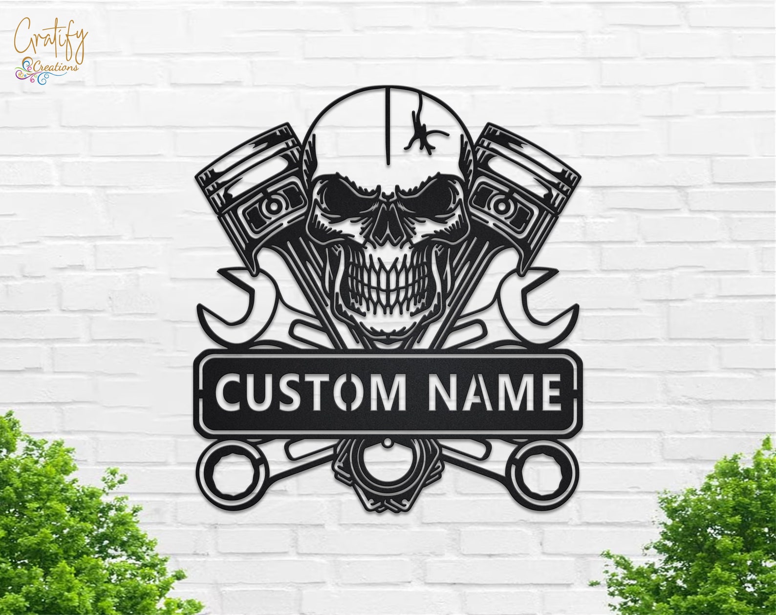 Looking for a unique and eye-catching way to decorate your garage or workshop? Look no further than our Skull Garage Metal Wall Art LED Light Custom Workshop Name Sign!