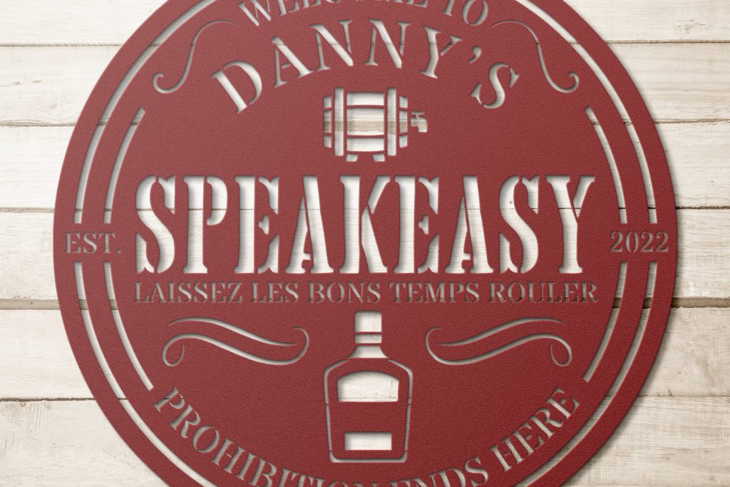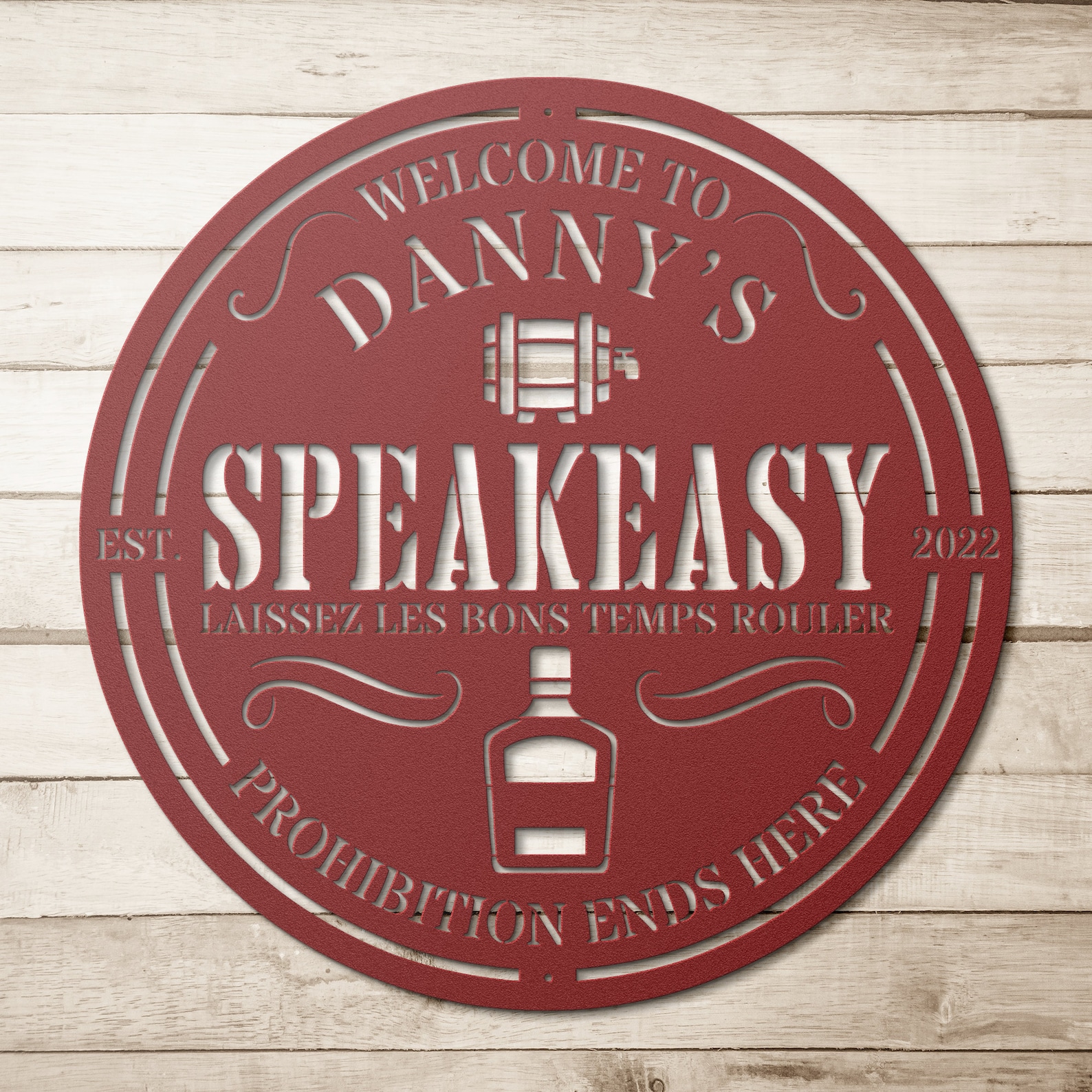 Transform your home into a private oasis of indulgence with this personalized speakeasy home bar sign. Crafted with meticulous attention to detail, this metal sign captures the allure and mystique of the Prohibition-era speakeasies. Customize it with your desired name or message, adding a touch of personalization that reflects your unique style and taste. Hang it above your home bar or entrance to create an atmosphere reminiscent of secret gatherings and hidden delights. The vintage-inspired design, complete with ornate lettering and art deco accents, adds an air of sophistication to any space. Whether you9;re hosting intimate gatherings or simply seeking a cozy retreat, this personalized speakeasy home bar sign sets the stage for unforgettable moments and clandestine celebrations.
