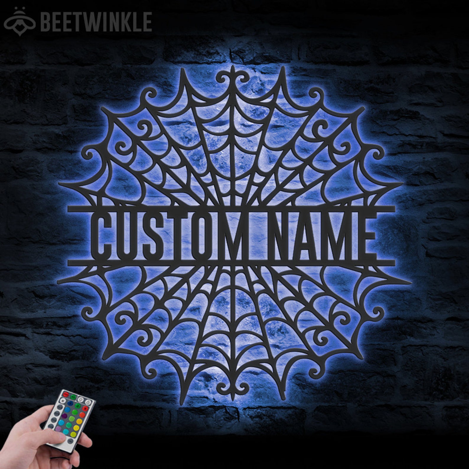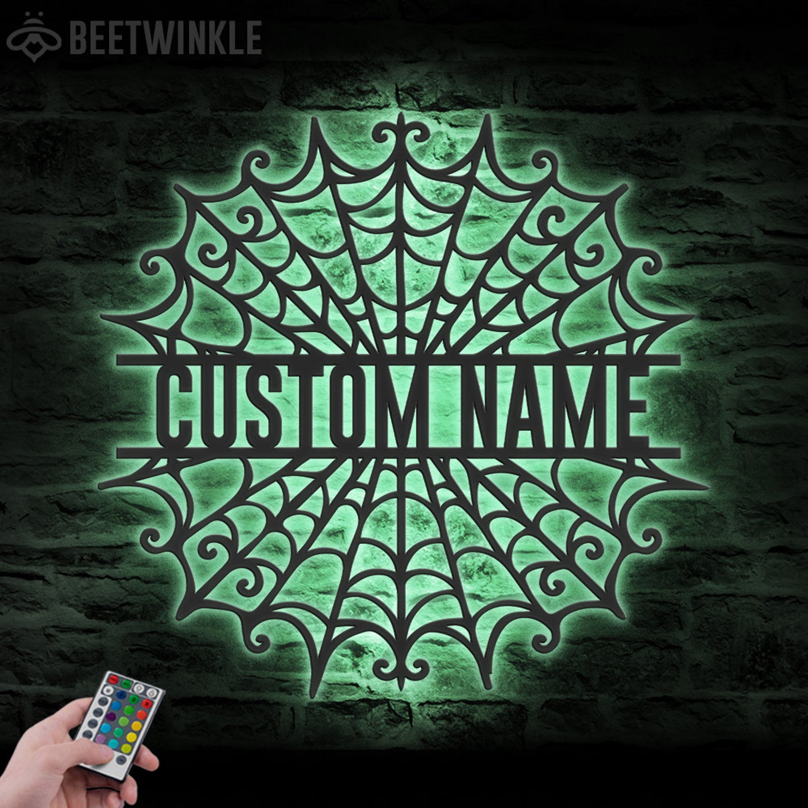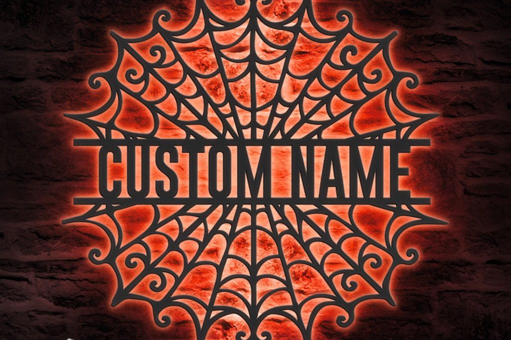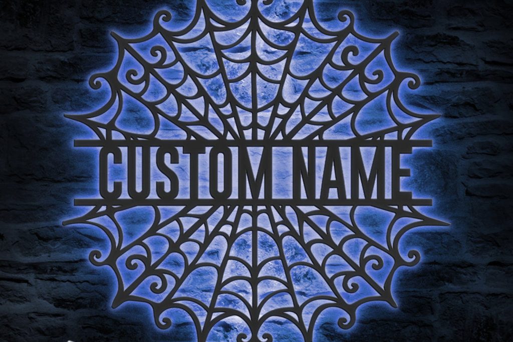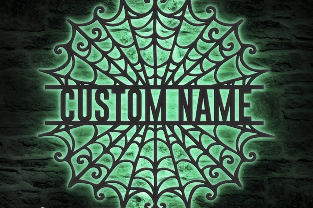 Be the first to review “Spider Halloween Art – Personalized Metal LED Web Wall Sign”