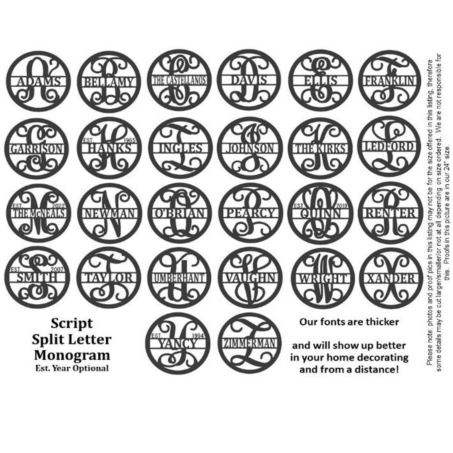 PERSONALIZATION: Only ONE initial in the background and ONLY Year, no dates, for Established year. Leave ONLY customization needed for dcor in image you are purchasing. TOO MUCH CUSTOMIZATION WILL BE LEFT OFF. Leave customization AS YOU WANT IT CUT (Smith Smiths The Smiths Smith Family). NOTE: Names show up nicer with fewer letters, we recommend leaving off "The" when possible. We are NOT responsible for typos or grammatic errors you make. For names with 2 capital letters it will be cut as follows unless you specify differently in order LeBeau will be cut LeBEAU in sign. Double last names – we cannot do a hyphen in the middle.