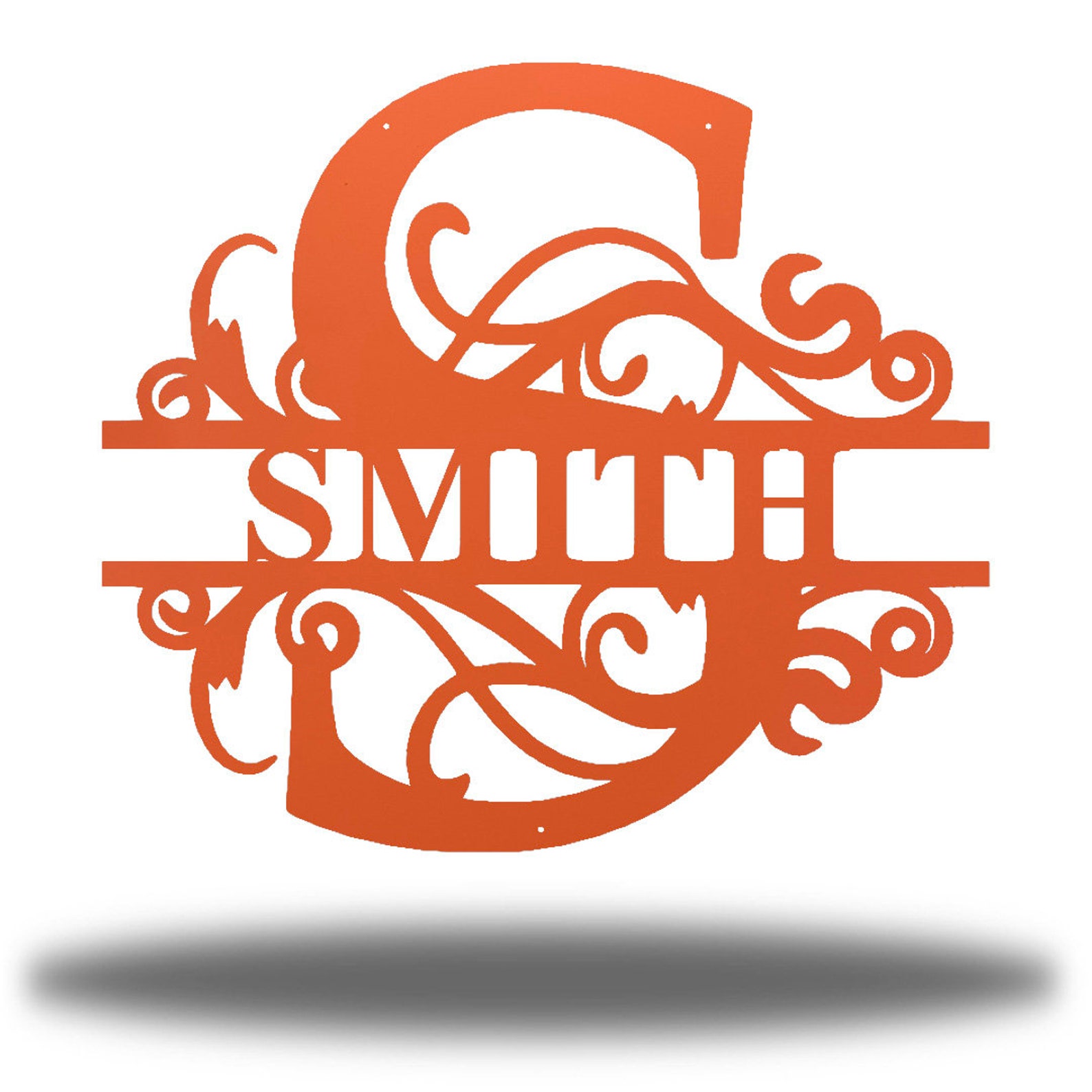 This Beautiful Split Swirl Custom Monogram is constructed of 18 gauge steel on a Fiber Laser and then Powder Coated to give this item a one of a kind, unique finish.