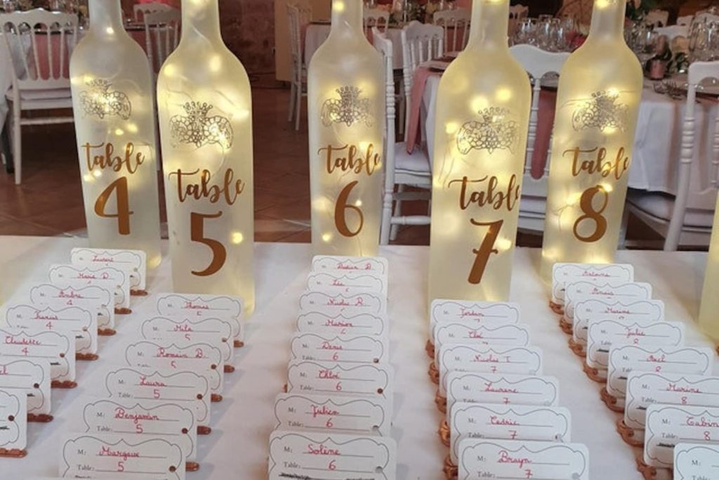 Table number decals are perfect for a DIY wedding. They can be placed on any flat, smooth surface. Just peel and stick.