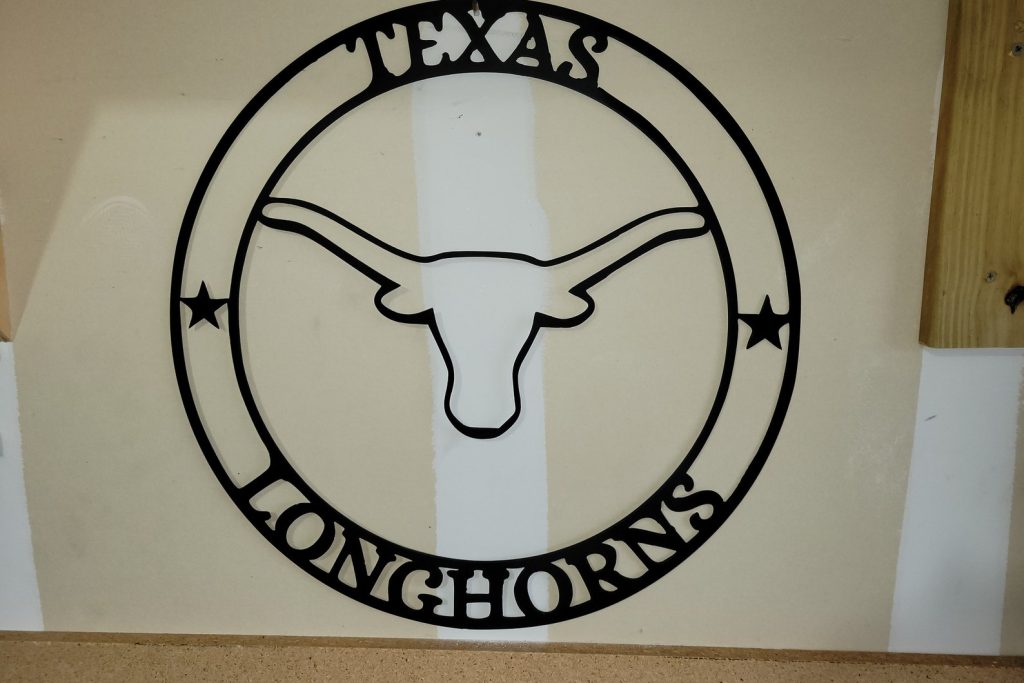 Introducing our Texas Longhorns Metal Sign, a must-have for any fan of this iconic team. Crafted from durable metal, this sign features the bold and unmistakable "Texas Longhorns" logo, making it the perfect addition to your home, office, or game room. Show off your team pride and support with this eye-catching sign that is sure to impress fellow fans. Whether you9;re a die-hard Longhorns supporter or looking for a unique gift, our Texas Longhorns Metal Sign is the ultimate choice.