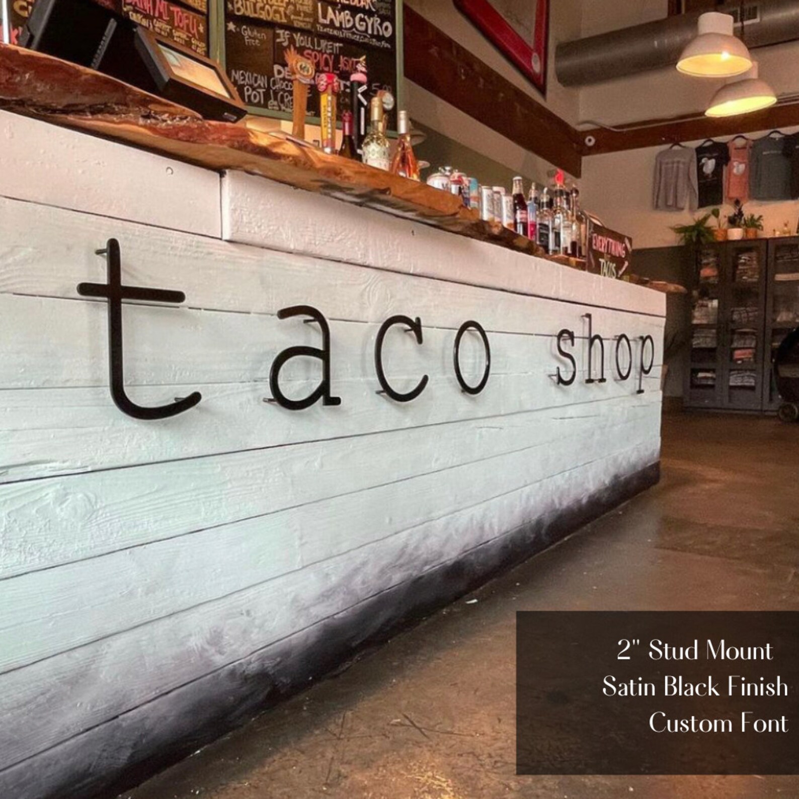 These metal letters are made out of 3/16" thick steel and have 2" studs welded on the backs. They are perfect for creating a custom raised or floating sign, or for customers who do not want their metal sign letters to have visible screw heads. Our previous customers have incl restaurants, commercial offices, boutiques, salons, art studios, coffee shops, and more.