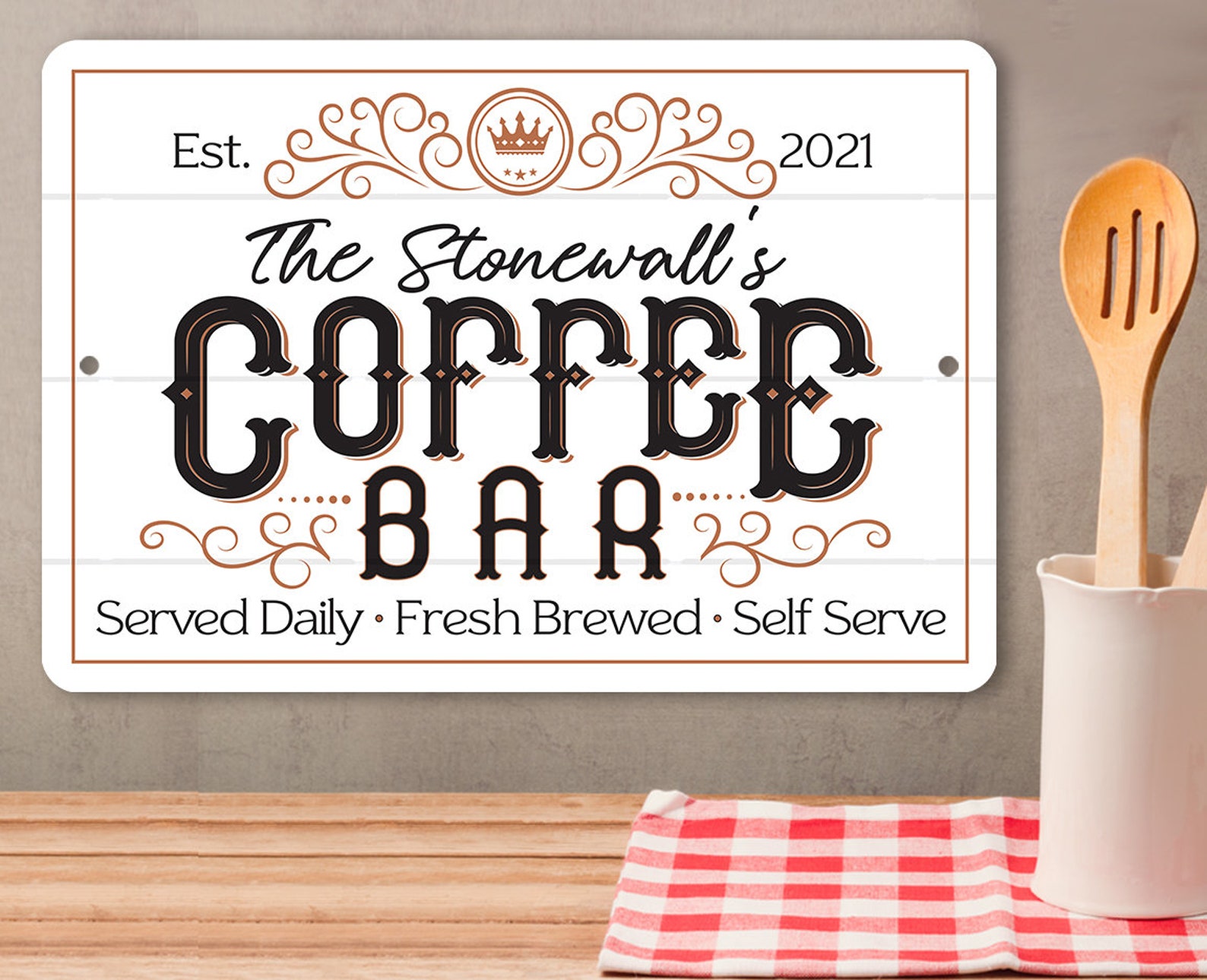 Tin – Personalized Coffee Bar Metal Sign – 8" x 12" or 12" x 18" Use Indoor/Outdoor – Coffee Shop Decor