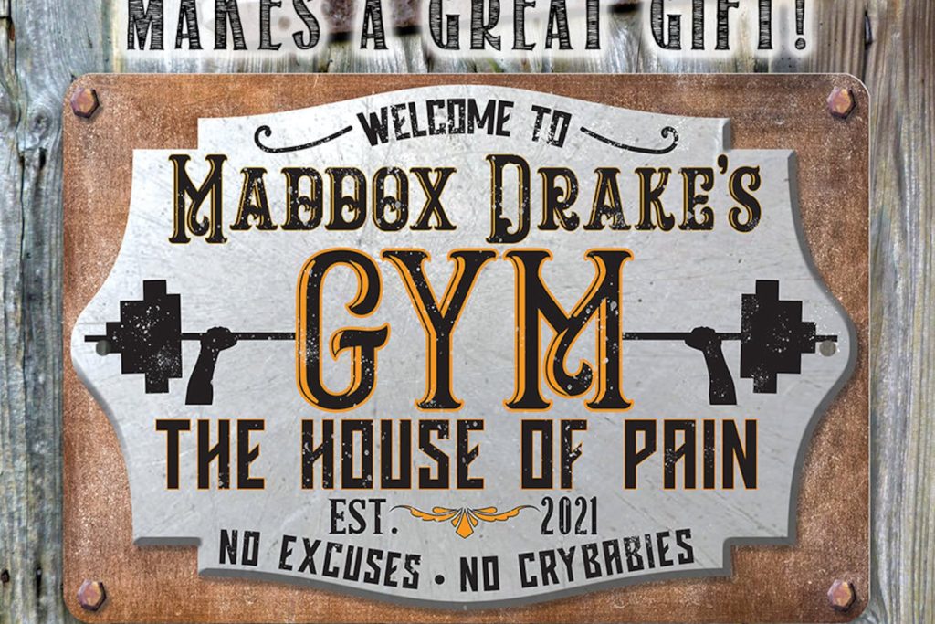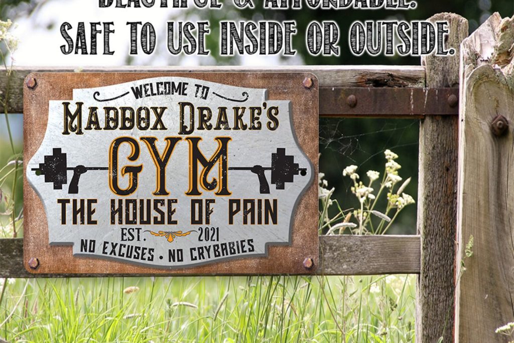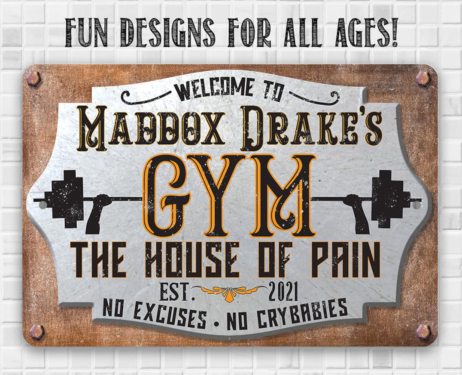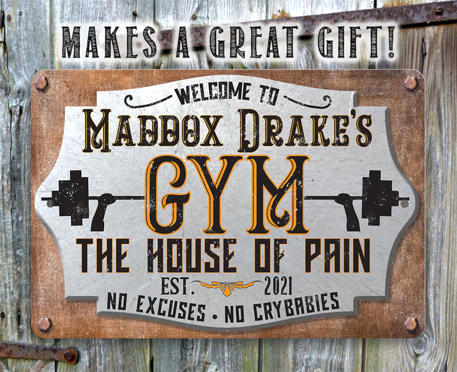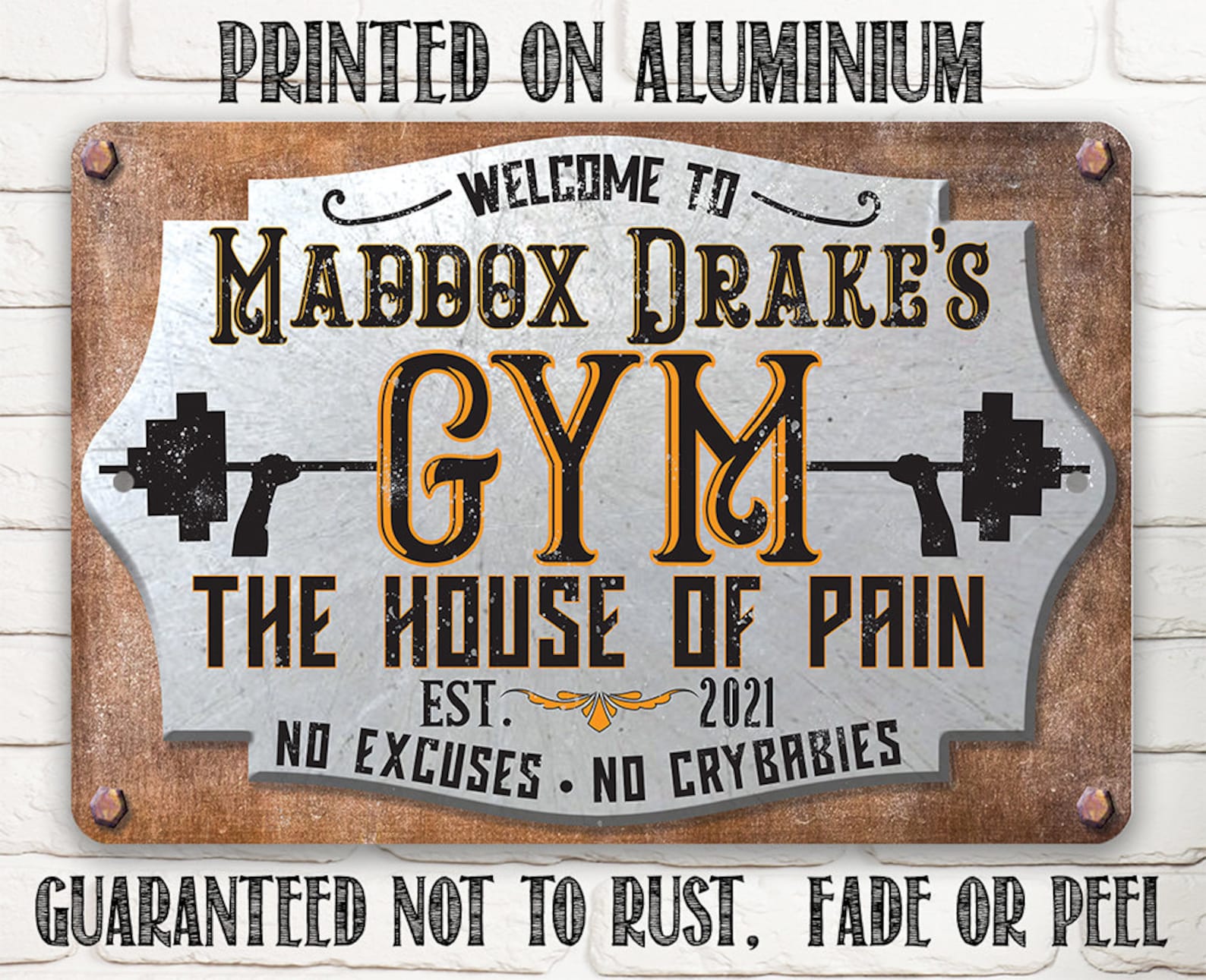 Tin – Personalized Gym House of Pain Metal Sign – 8" x 12" or 12" x 18" Use Indoor/Outdoor – Motivational and Gym Dcor