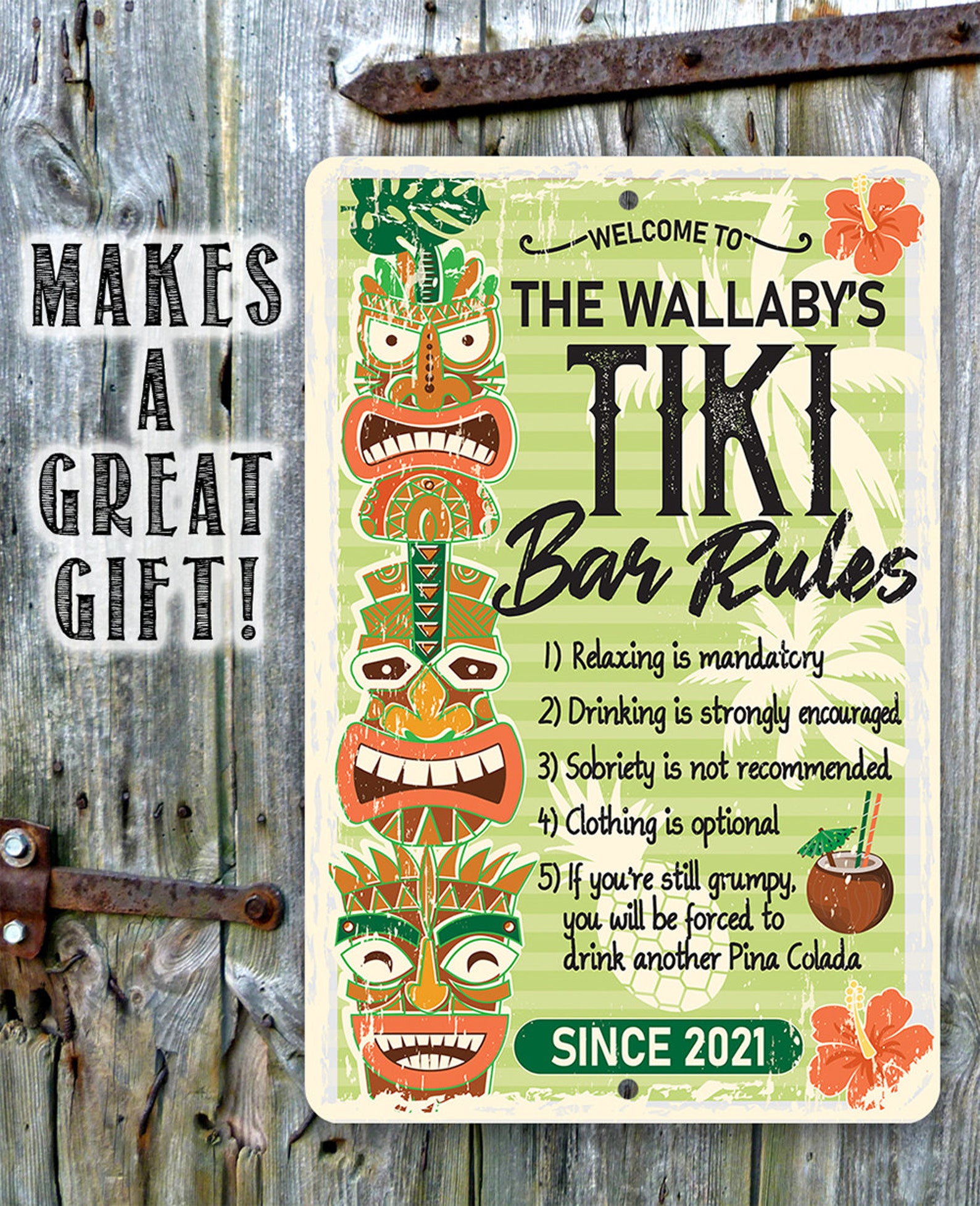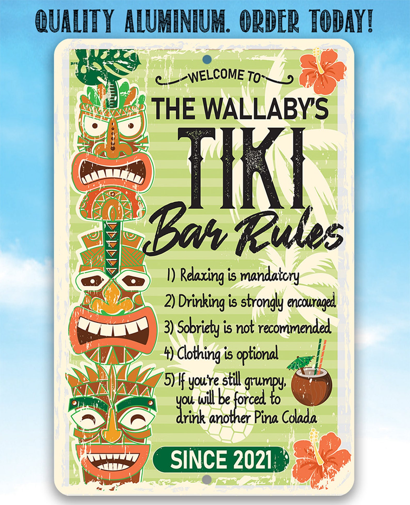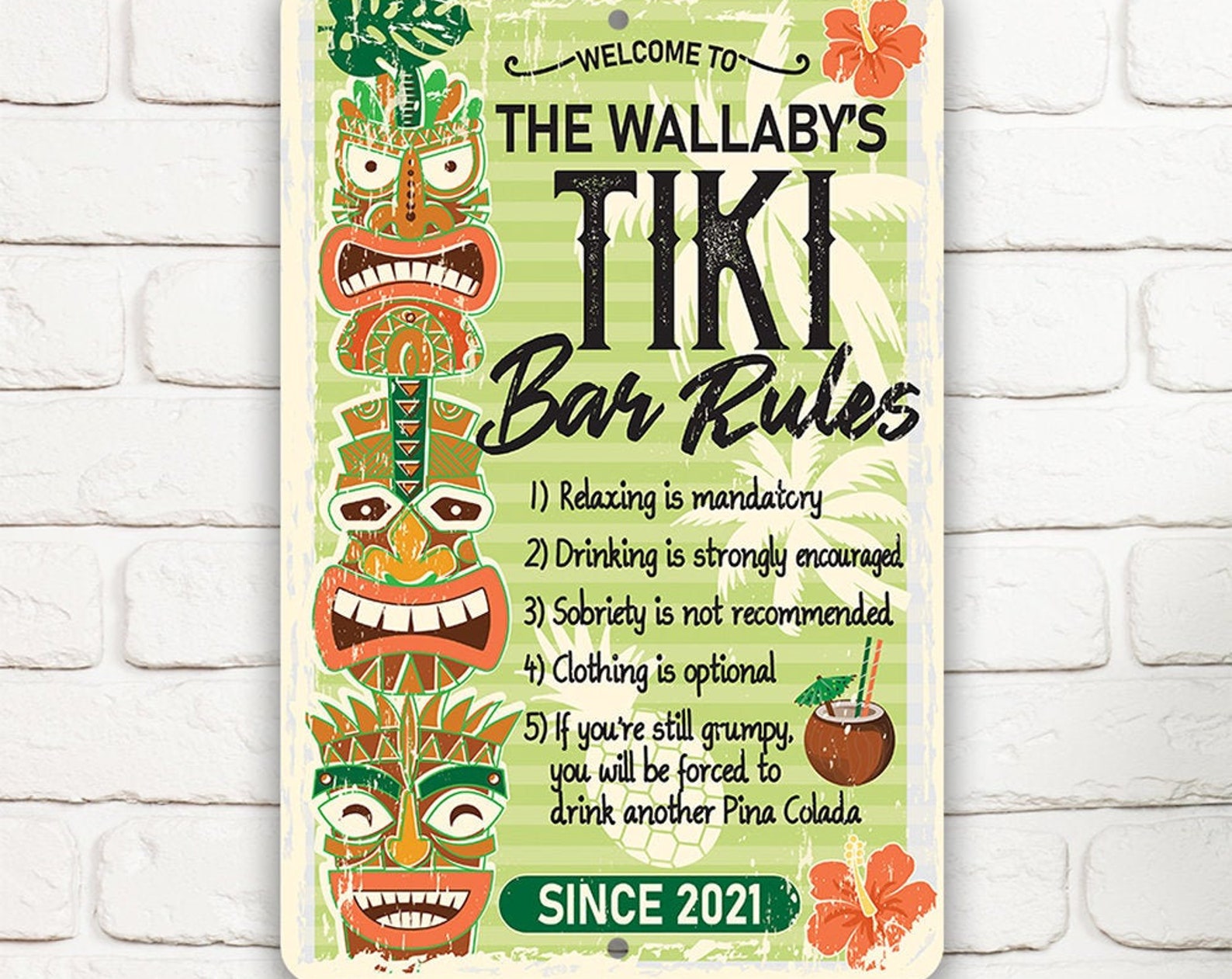 Tin – Personalized Tiki Bar Rules Metal Sign – 8" x 12" or 12" x 18" Use Indoor/Outdoor – Decor for Bar