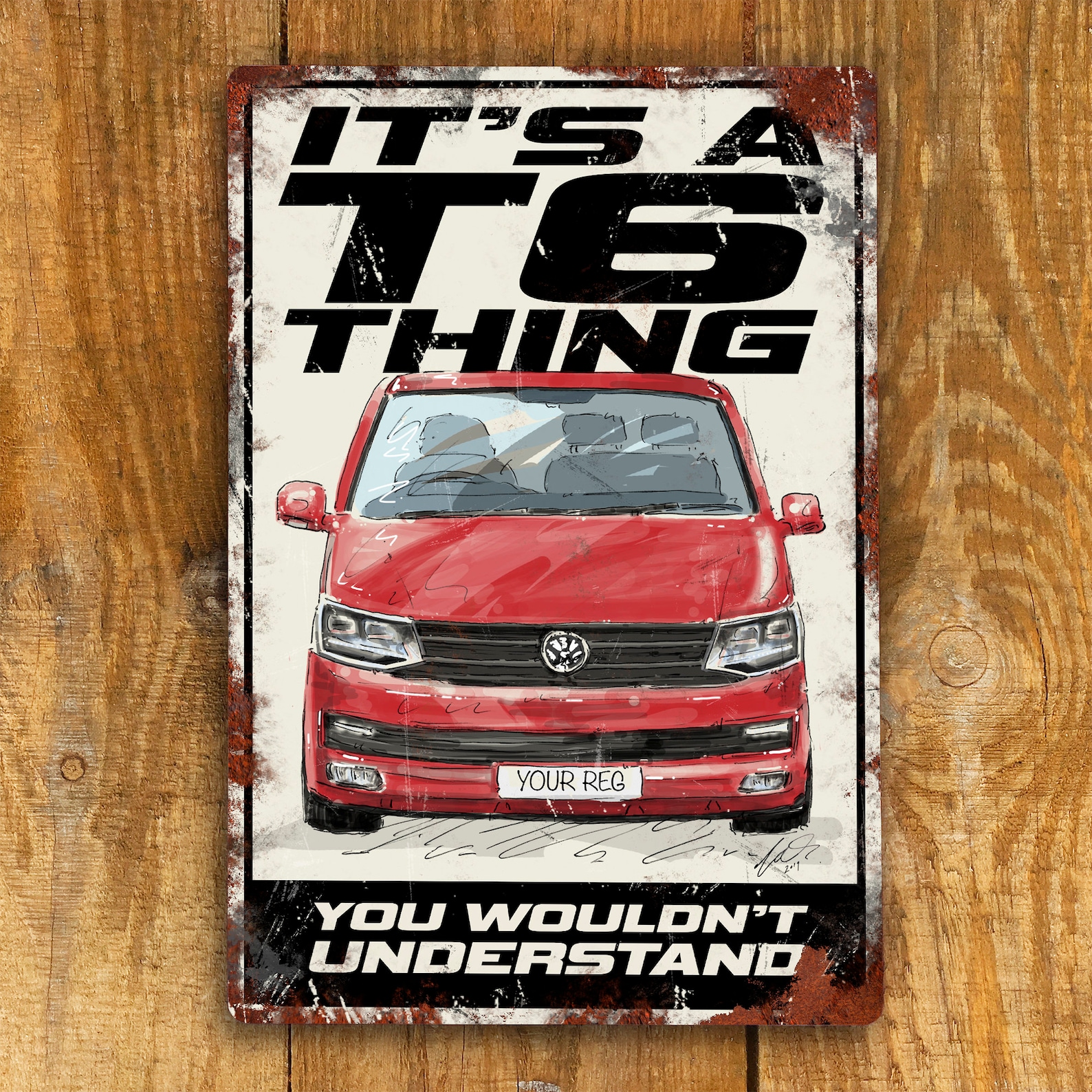 Personalised Transporter T6 Camper Van Vintage Style Metal Tin Sign Wall Door Decor Car Accessory Garage Man Cave Retro Plaque 200mm x 305mm