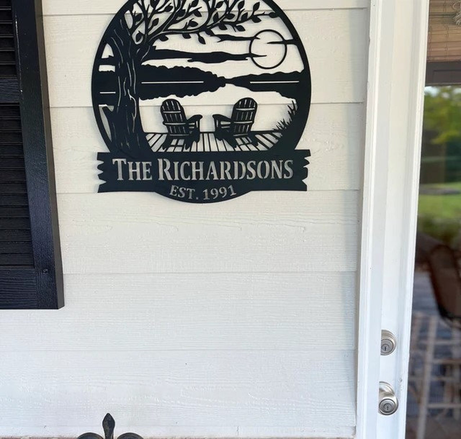 Be the first to review “Tree Chairs Dock Sign – Personalized Metal Monogram”