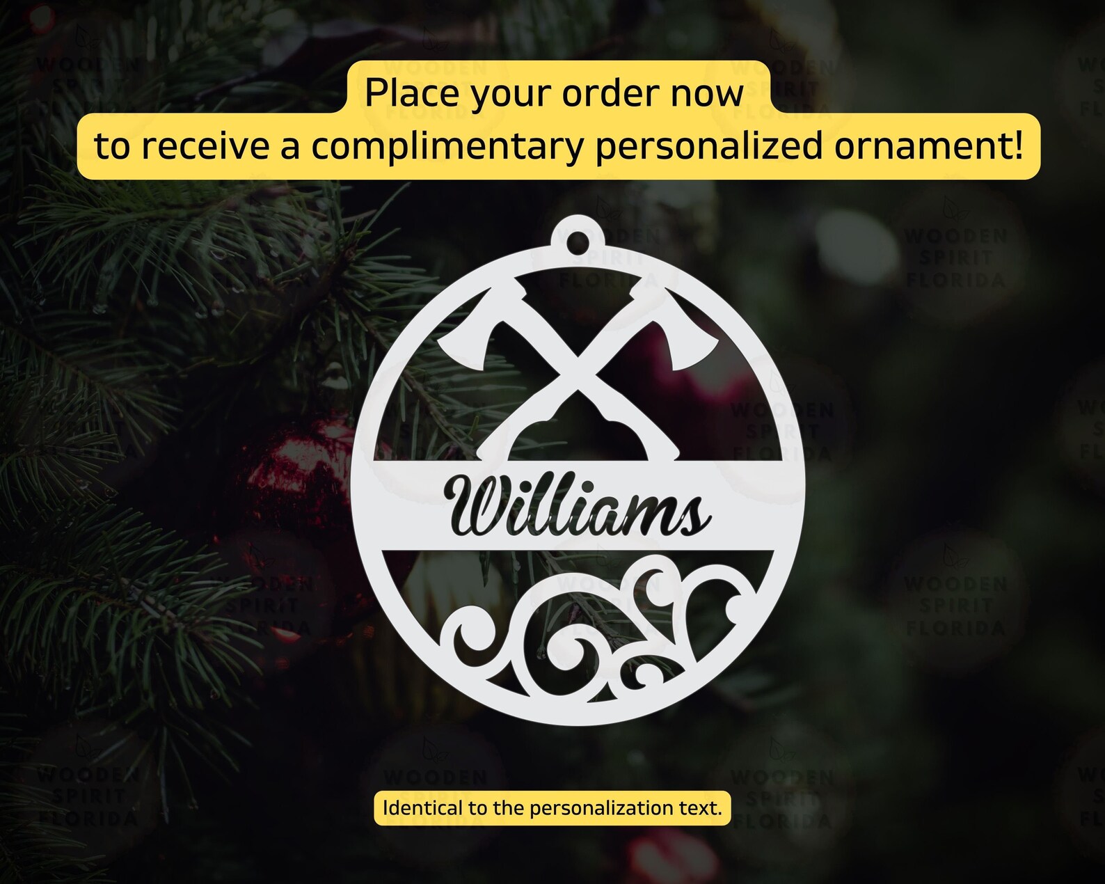 Complement your purchase with a FREE ornament, tailored to match the personalized text of your order.