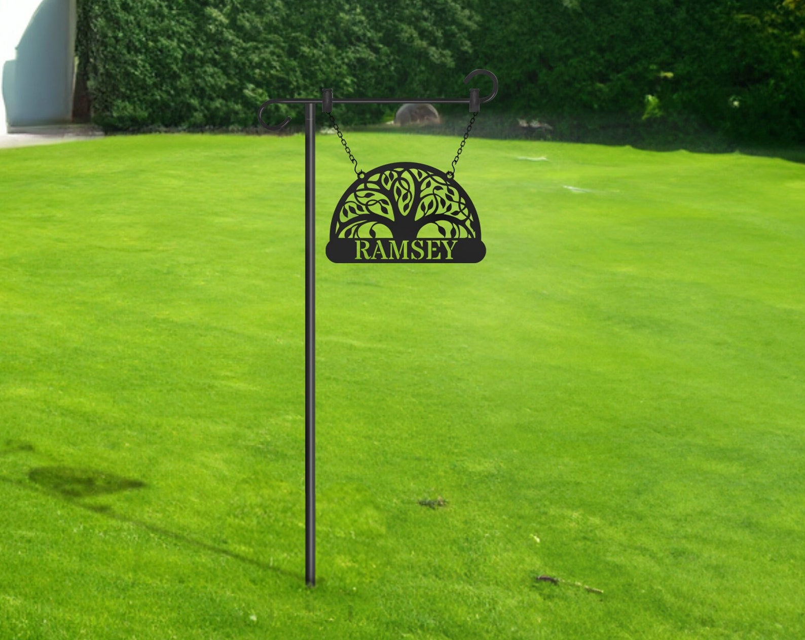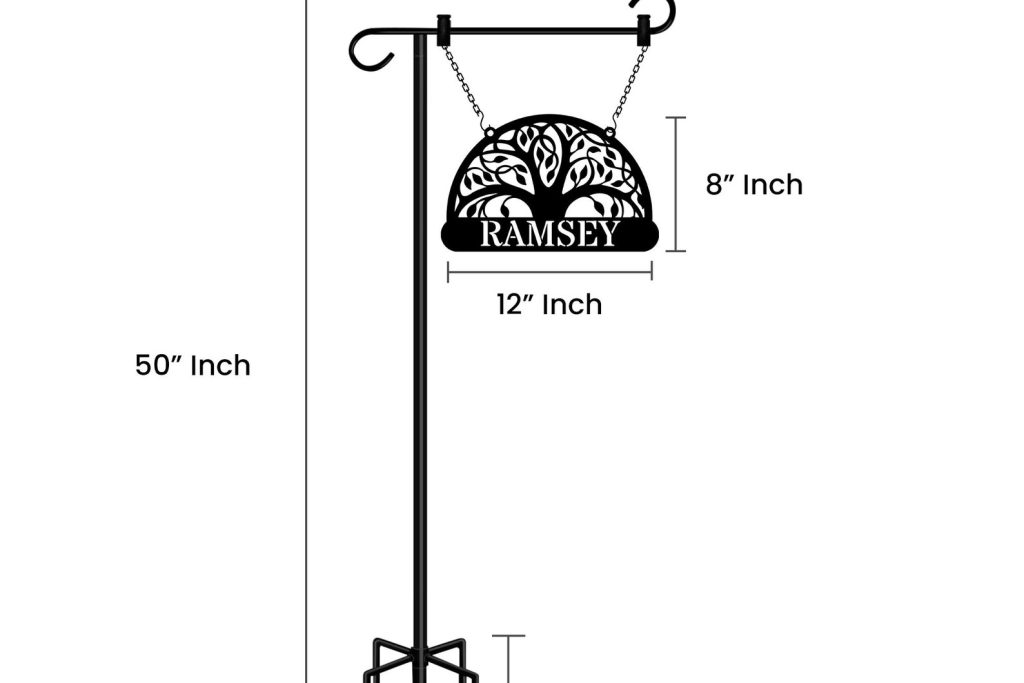 Quality Materials – This personalized metal Tree of Life garden flag with stand is constructed from strong, solid 16G carbon steel and finished with a weatherproof powder coat finish. Optional beefy adjustable 34-50" Pole.