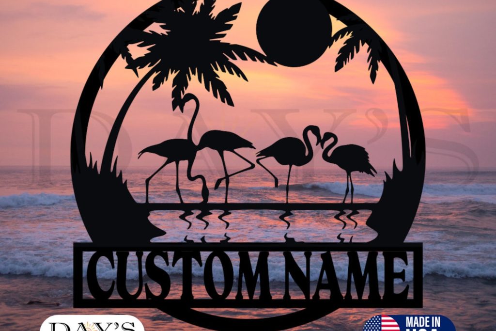 Tropical Flamingo Personalized Metal Sign, Decoration, Decorations, Decor Home, Decorating, Metal Sign, Home Decor, Home Decoration, Gift