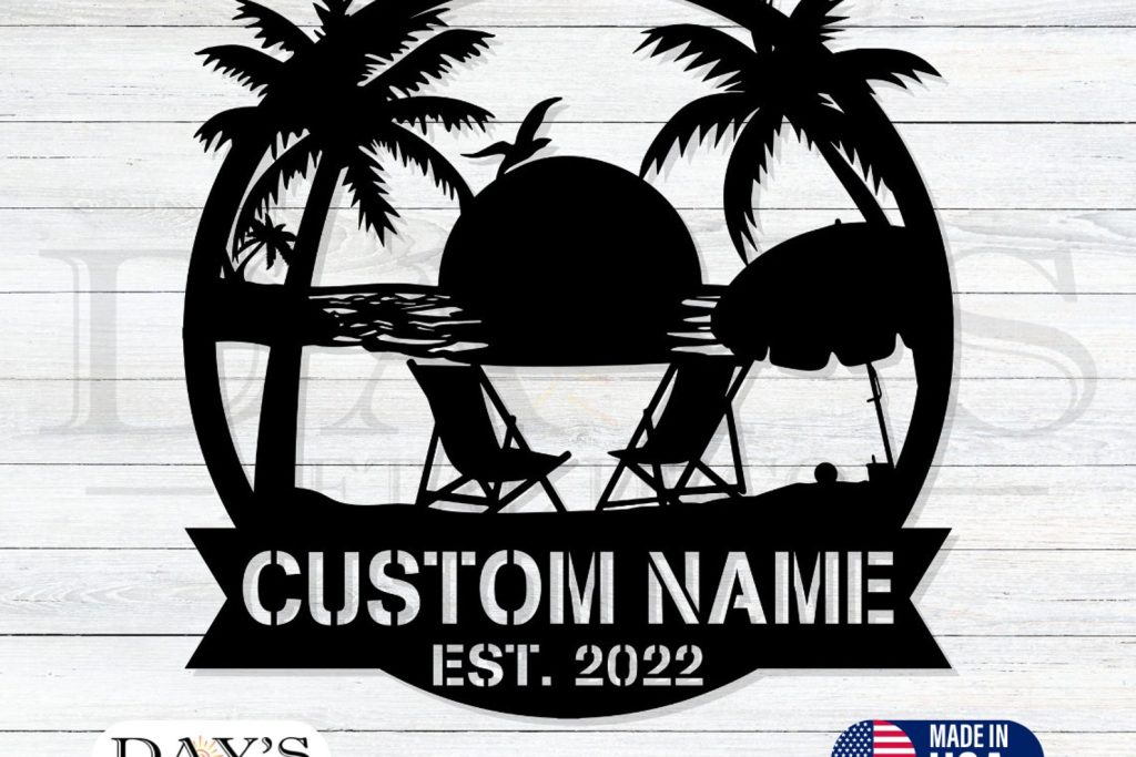 Be the first to review “Tropical Themed Personalized Metal Sign – Beach House Decor, Backyard Sign”