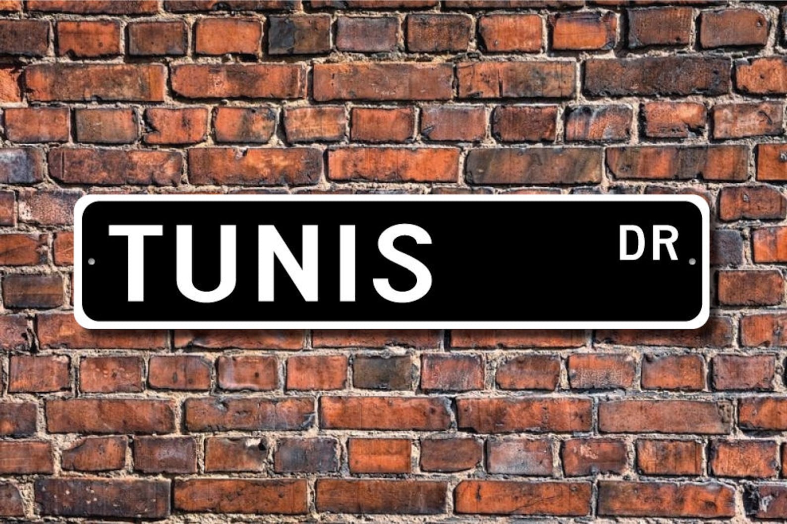 Tunis lovers check out this awesome street sign! This will make the perfect piece for any Tunis traveler, or maybe you are a Tunis native looking for a cool decor piece ! Made of premium aluminum -it will stand the test of time. This sign will look great in any room, home den, man cave, or office! Get this sign to commemorate your trip to Tunis !