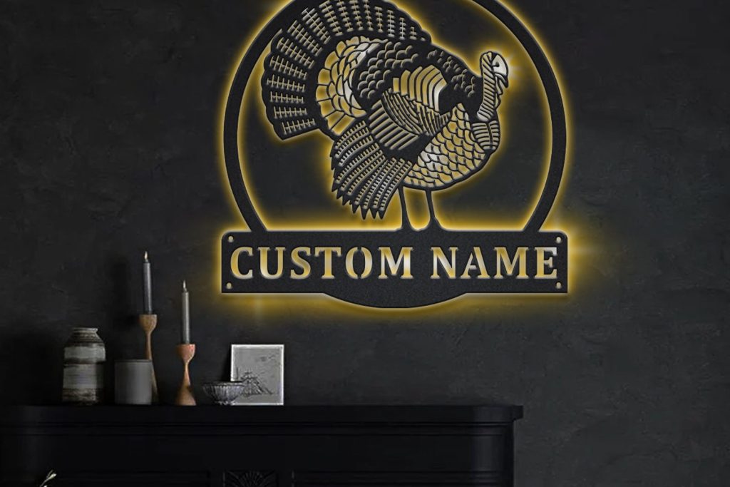 Be the first to review “Turkey Bird Monogram Metal Wall Art – LED Lights”