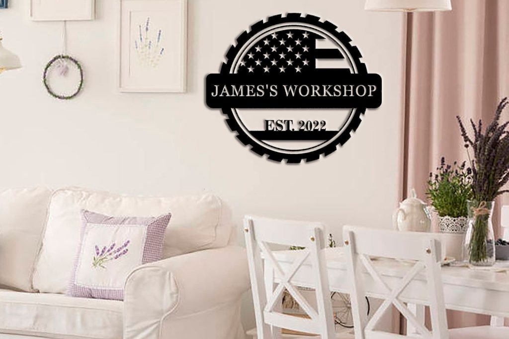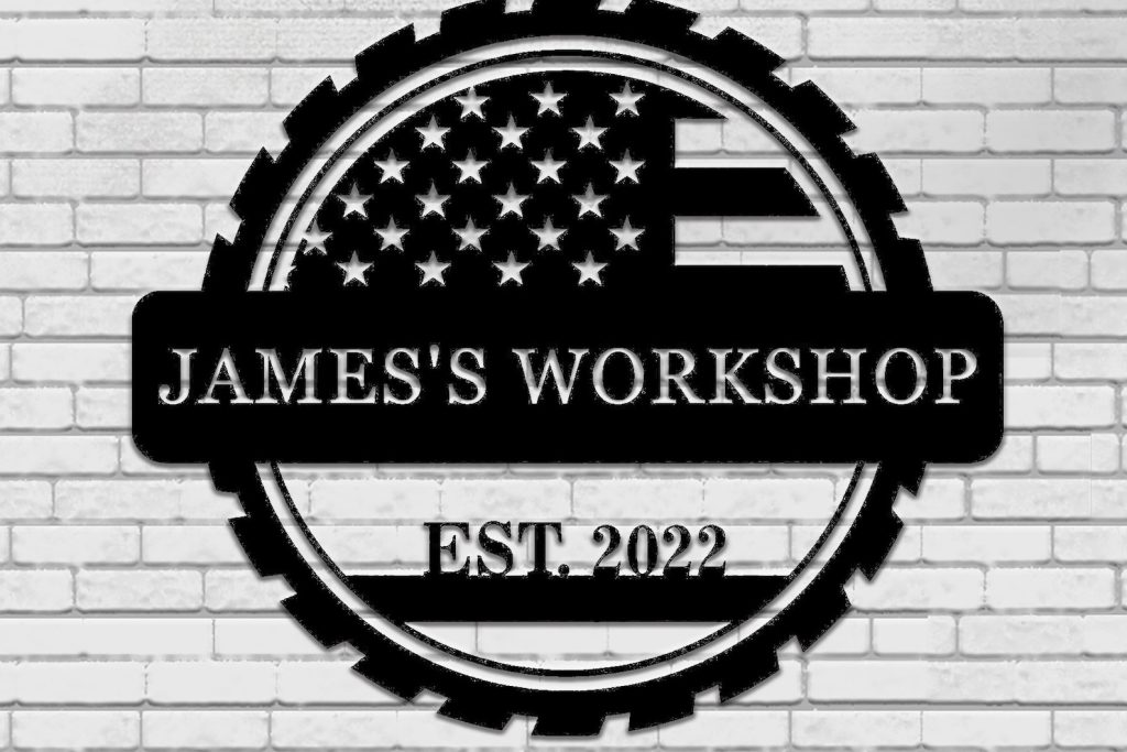 US Flag Workshop Sign – Custom Metal Patriotic Decor