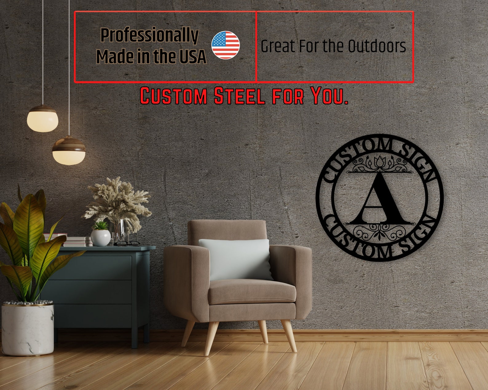 Valentines Day Gift: Custom Initial Floral Circle Sign