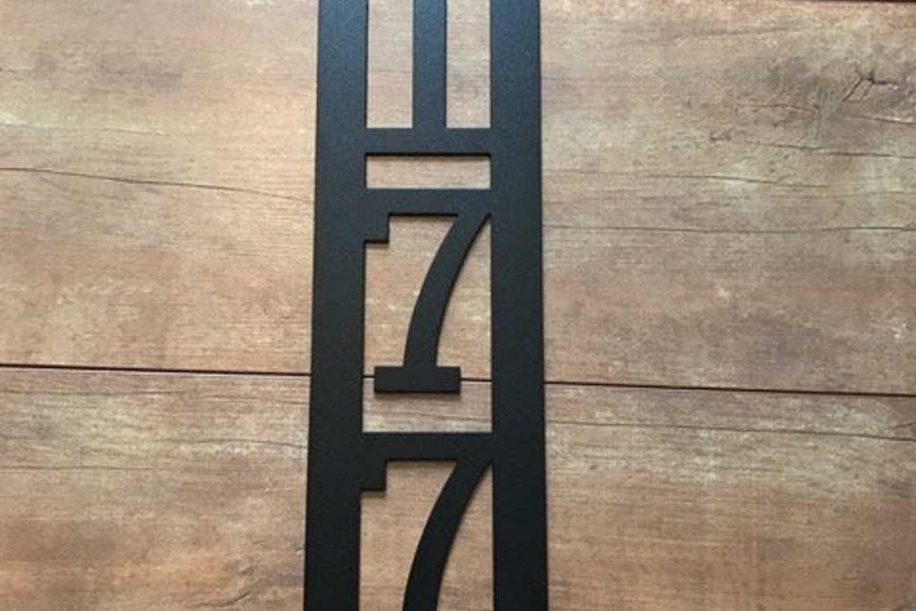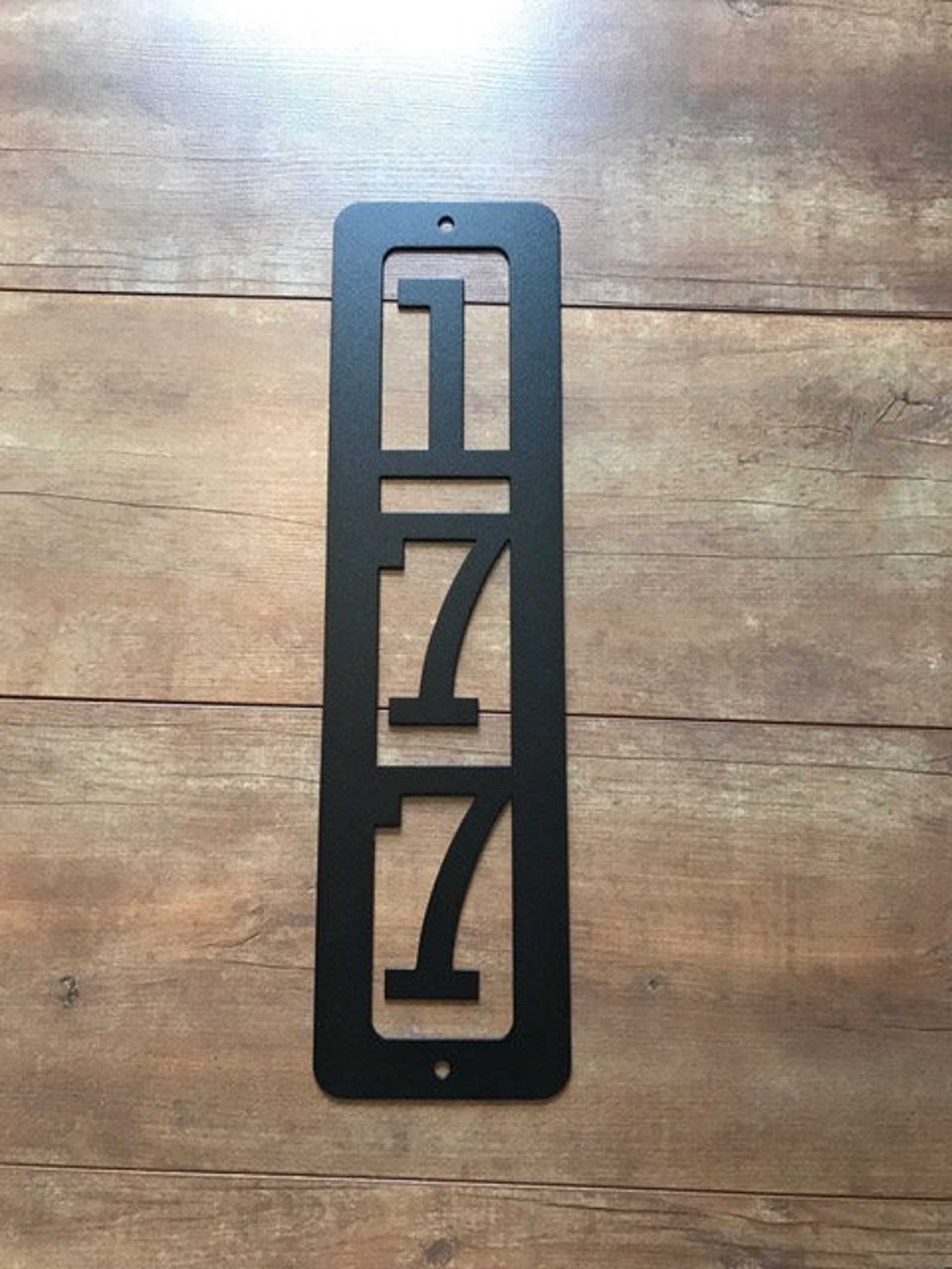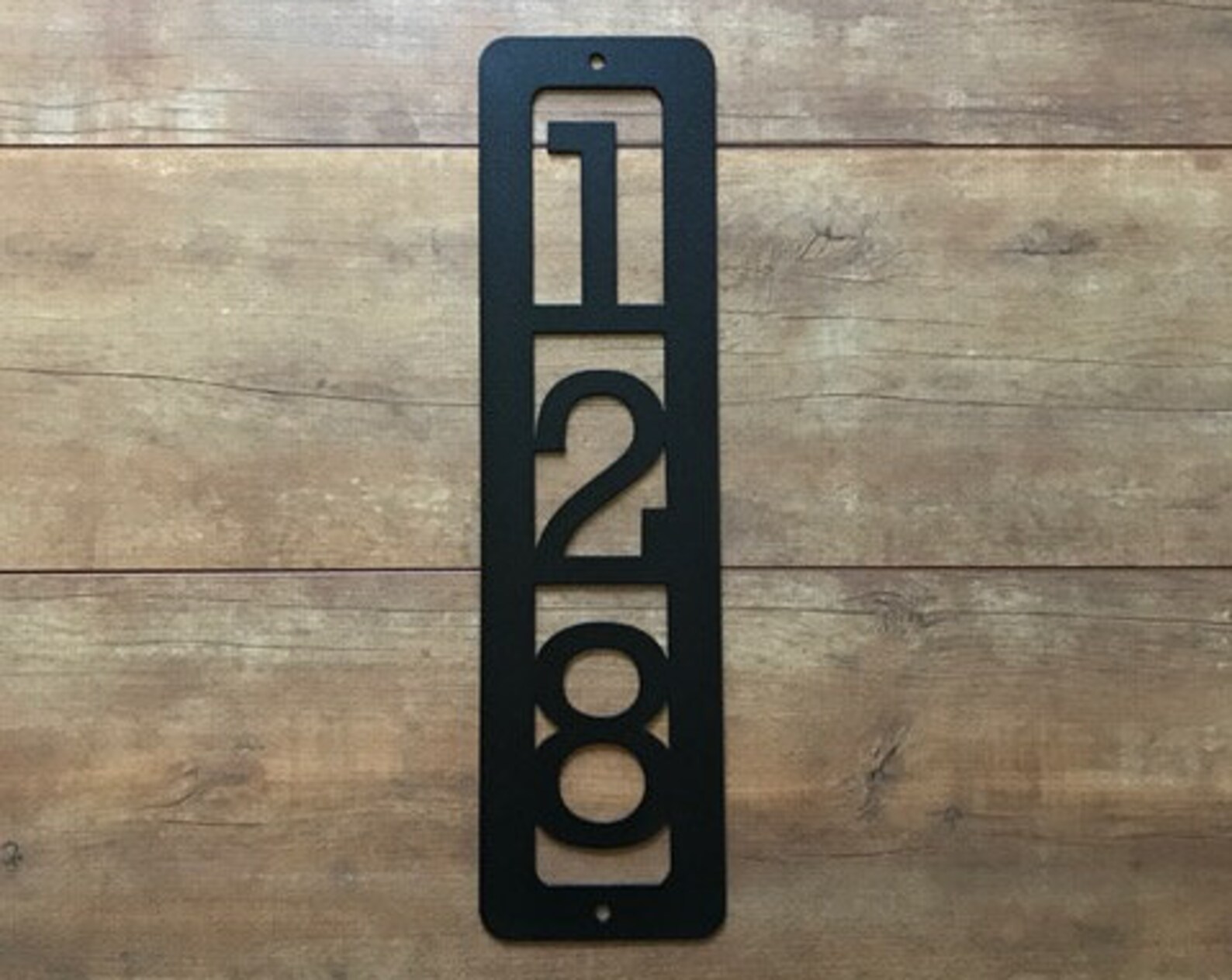 Vertical House Numbers Metal Sign, Modern Address Marker