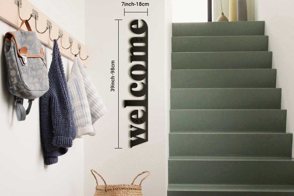Vertical Metal Welcome Sign: Modern Front Porch D篓娄cor