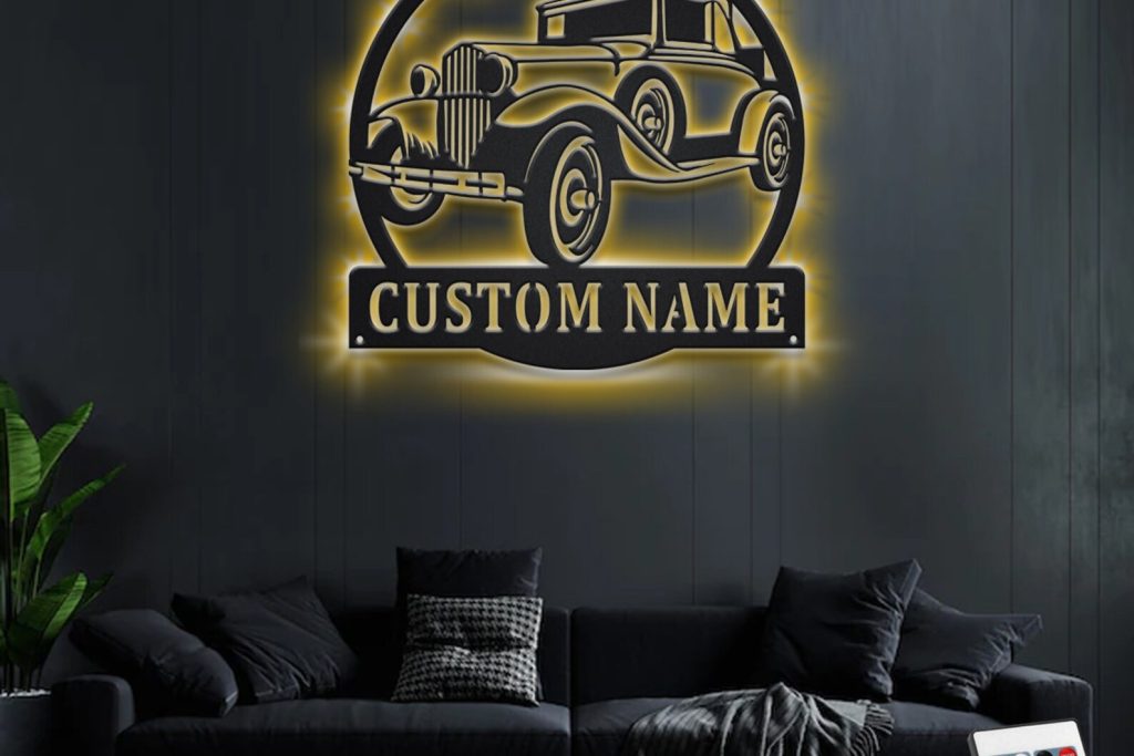 Be the first to review “Vintage Car Art – LED Personal Metal Garage Sign”