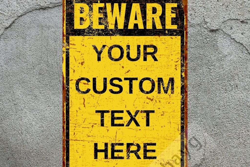 Vintage Country Home Decor, Custom Warning Sign, Metal Yellow Sign