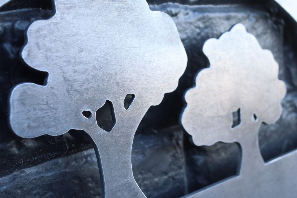 INDOOR FLAT CLEAR -DARK (EVEN BLACK) – The Indoor Flat Clear finish is an oil-based matte clear coat that makes the steel darker, sometimes even black. This finish will hold up well inside and is easy to clean. This finish can be darker or lighter than our pictures depending on the recycled steel we use that day.