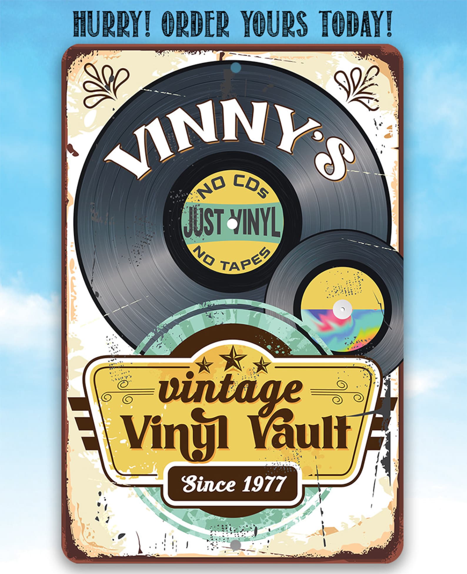 Personalized Vintage Vinyl Vault – Durable Metal Sign – 8" x 12" or 12" x 18" Use Indoor/Outdoor – Makes a Great Music Room or Studio Decor and Gift for Vinyl Lovers and Collectors