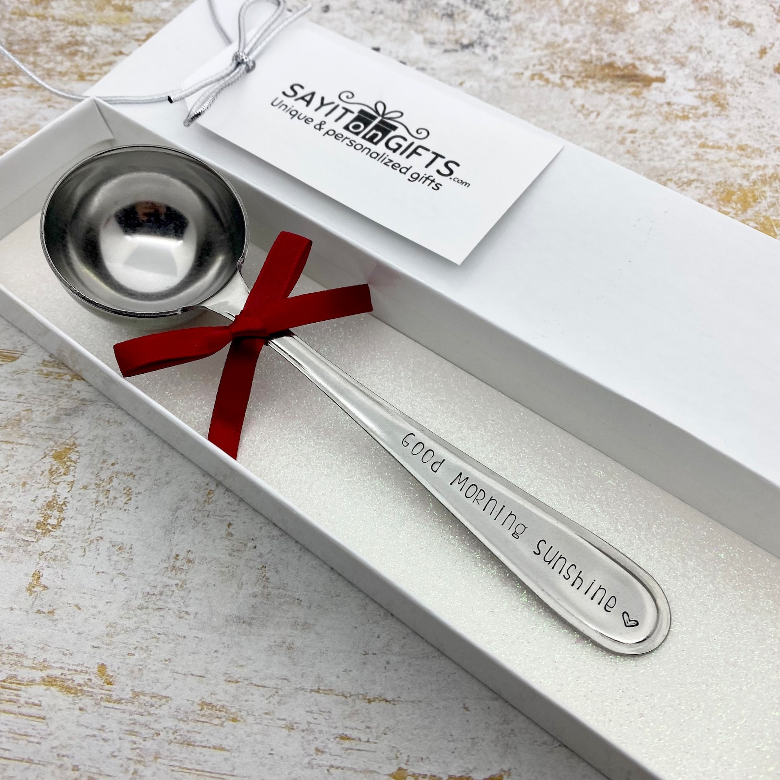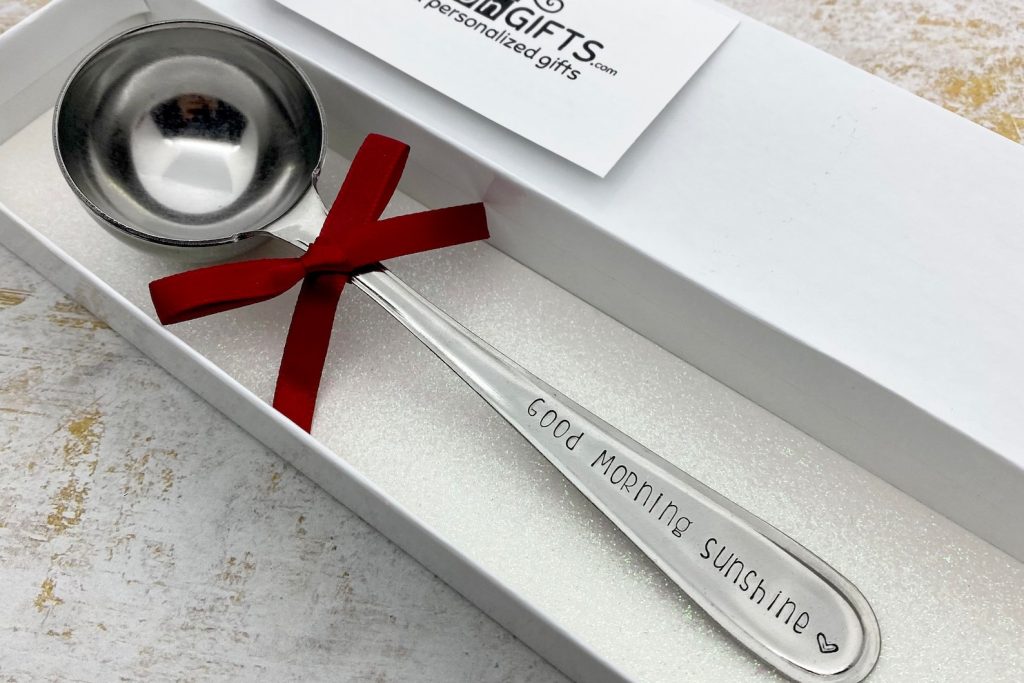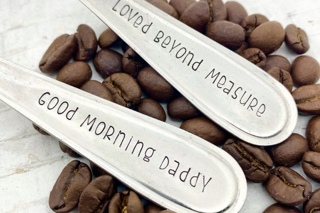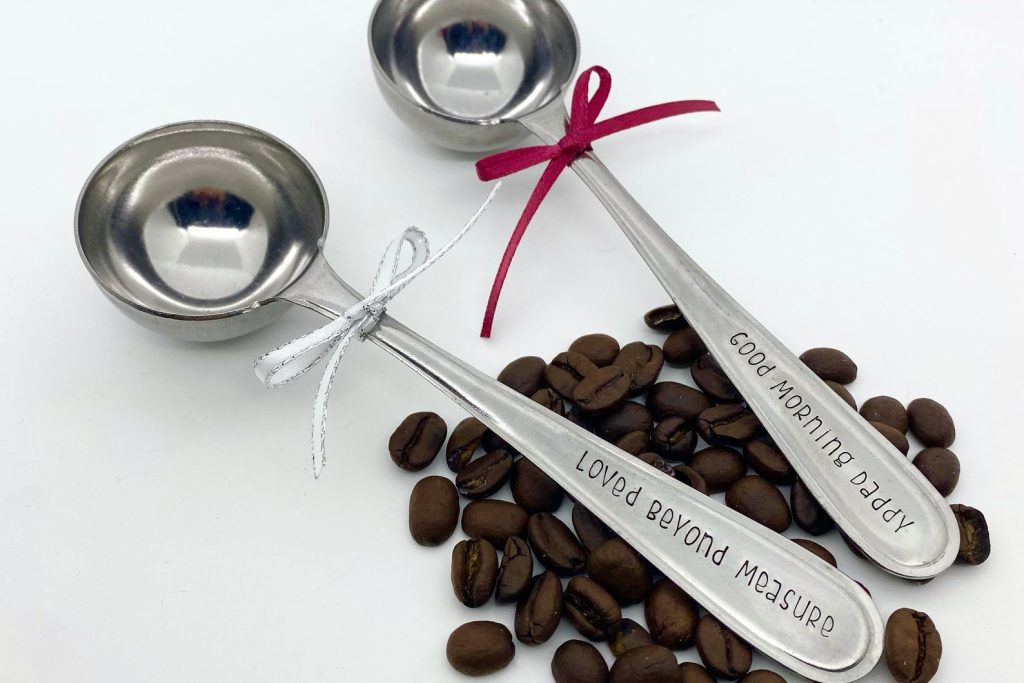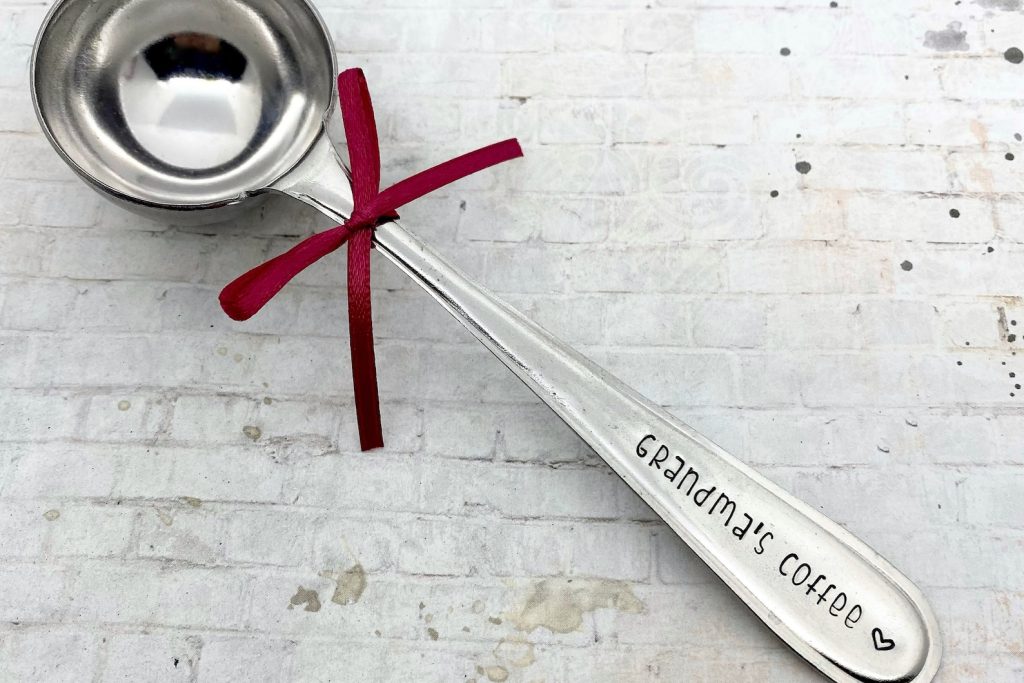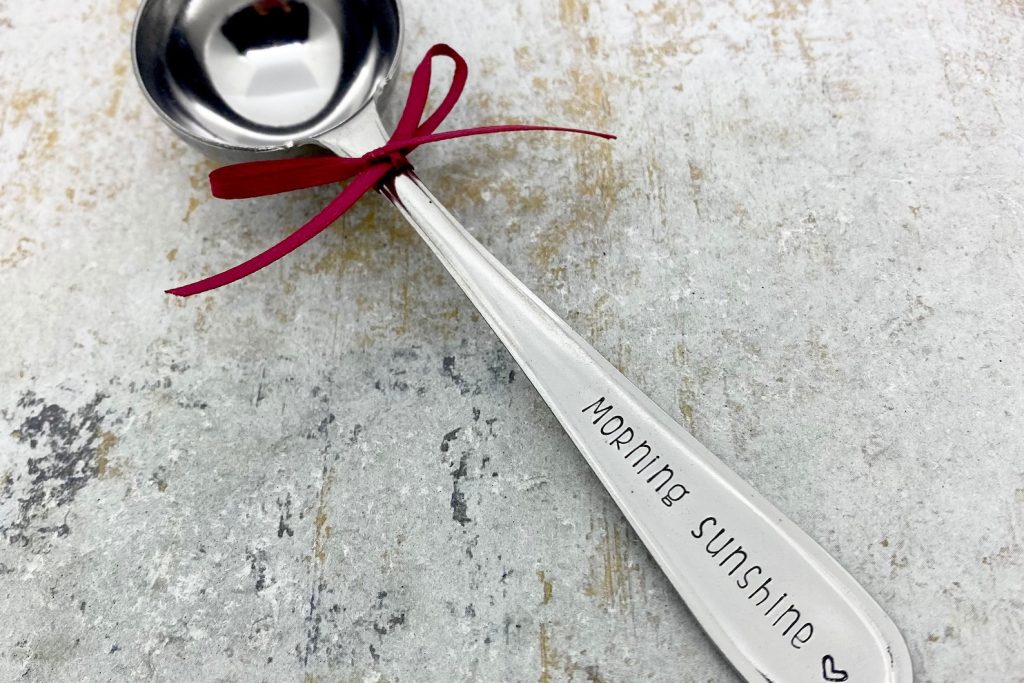 Hand stamped saying on scoops handle