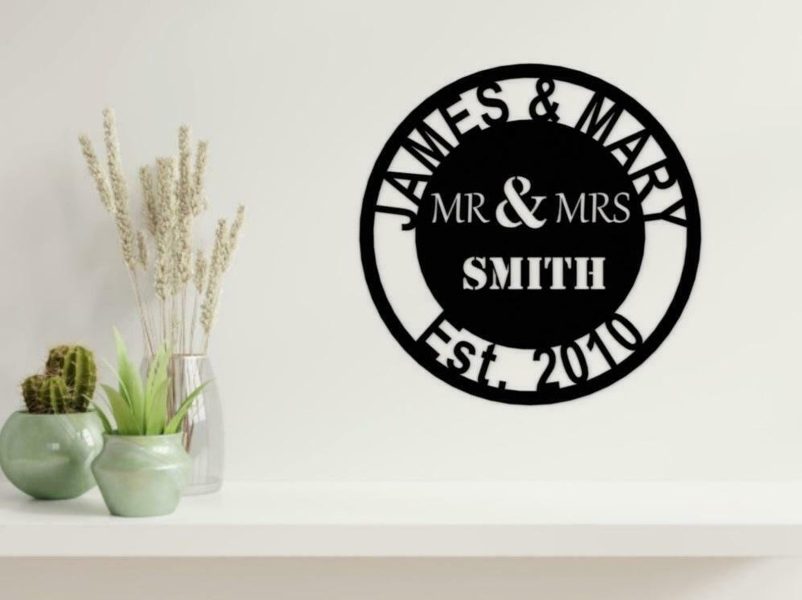 Be the first to review “Wedding Anniversary Gift: Mr. & Mrs. Metal Sign”