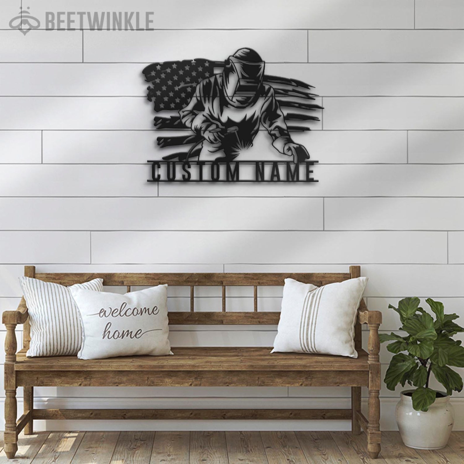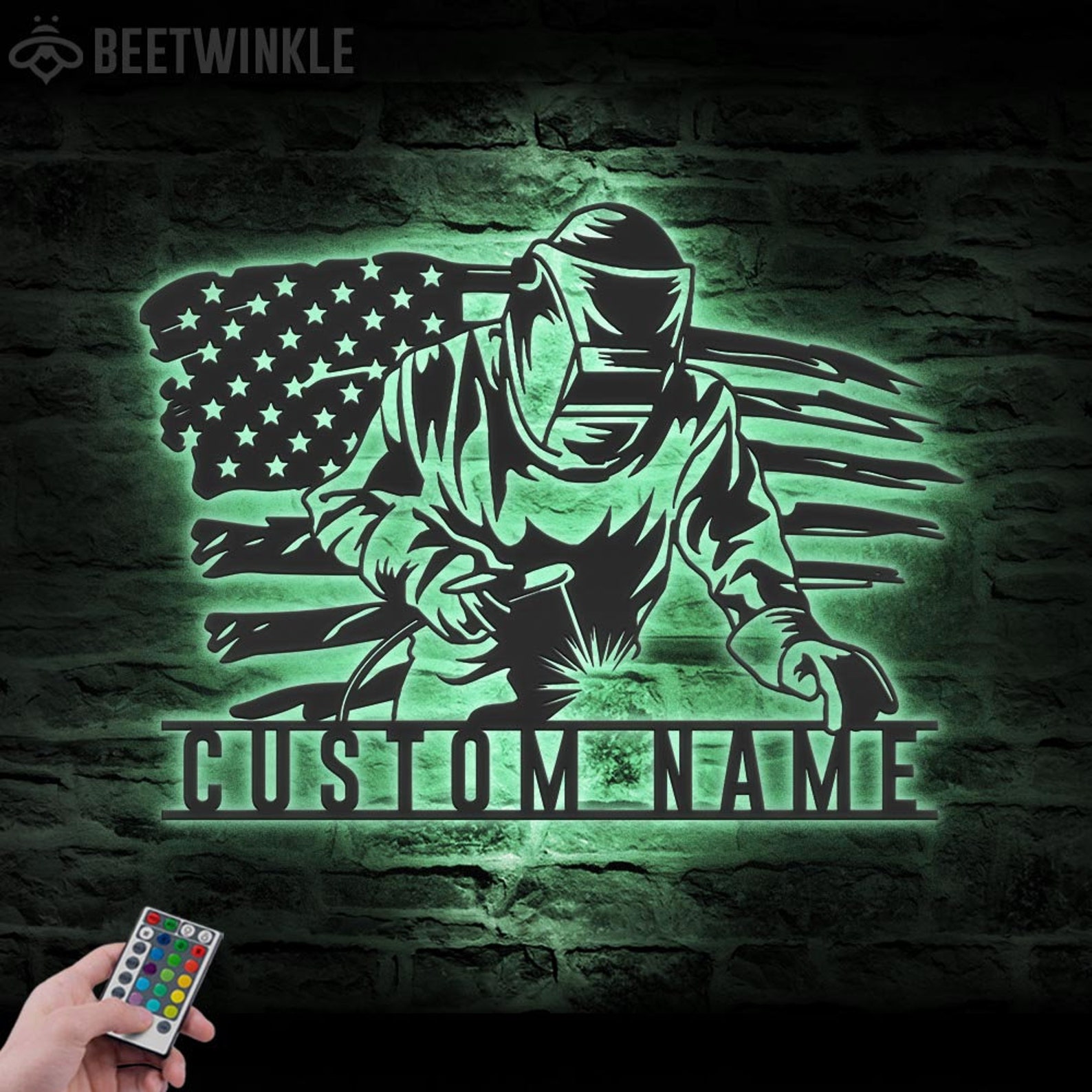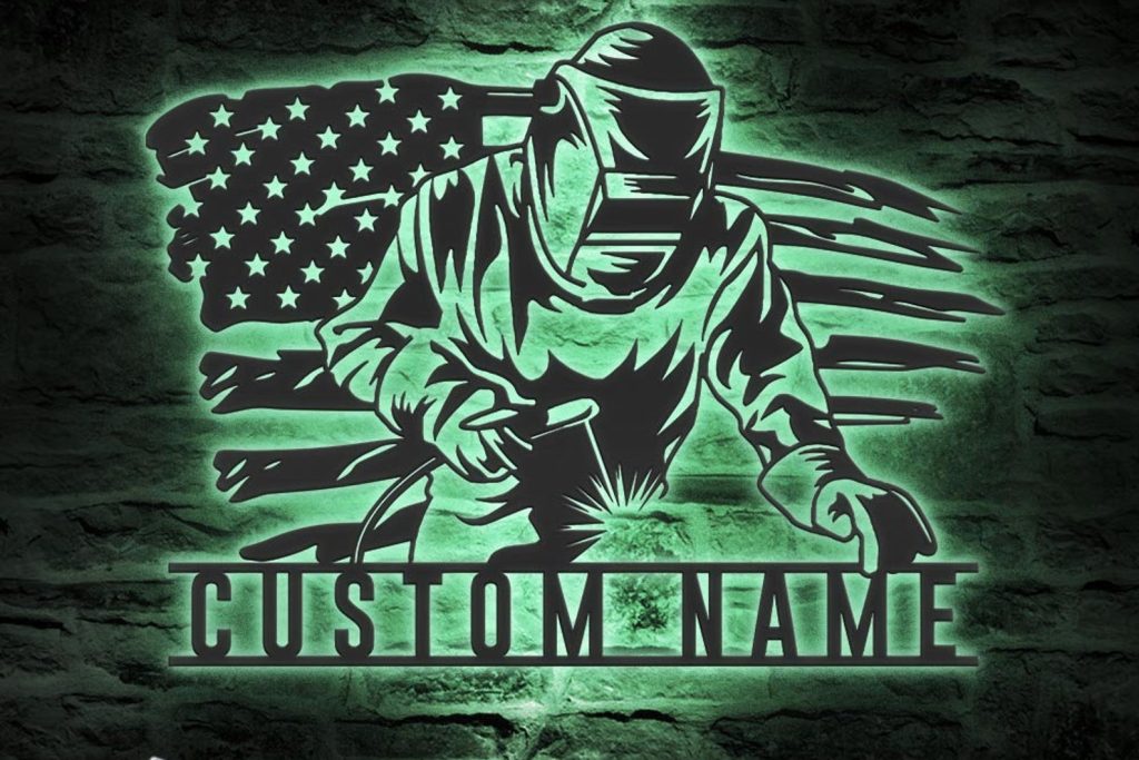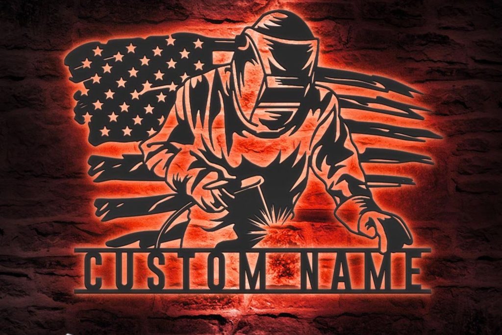 Be the first to review “Welding US Flag Sign, LED Light, Ironworker Gift”