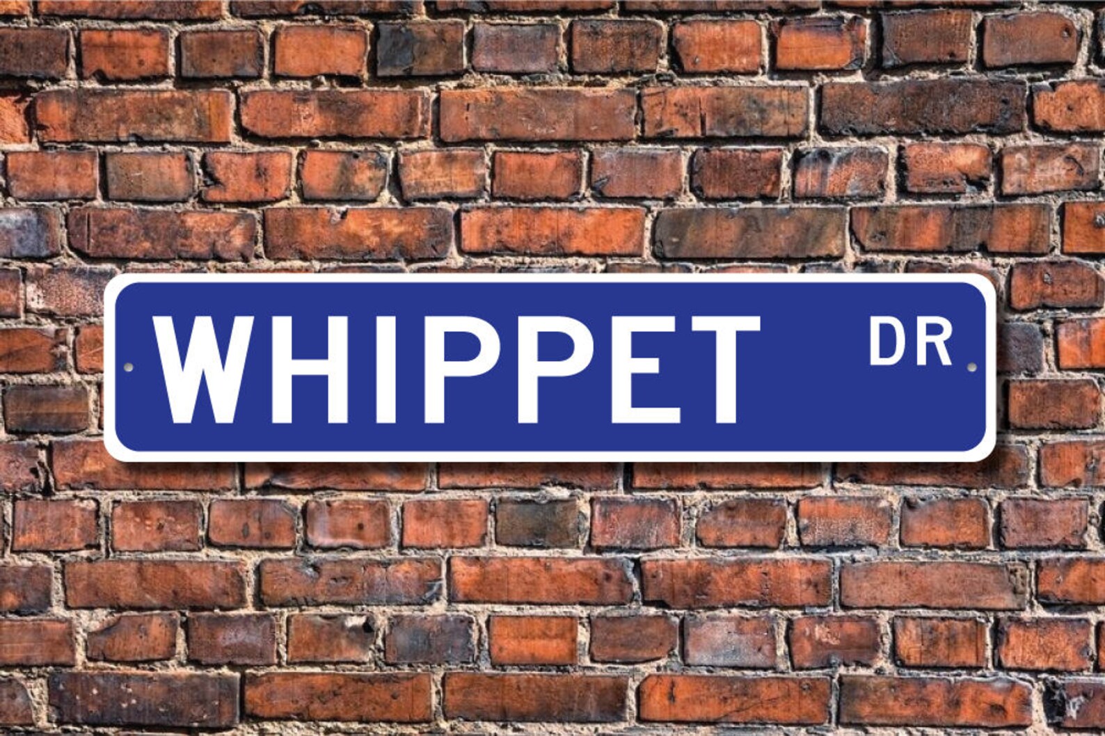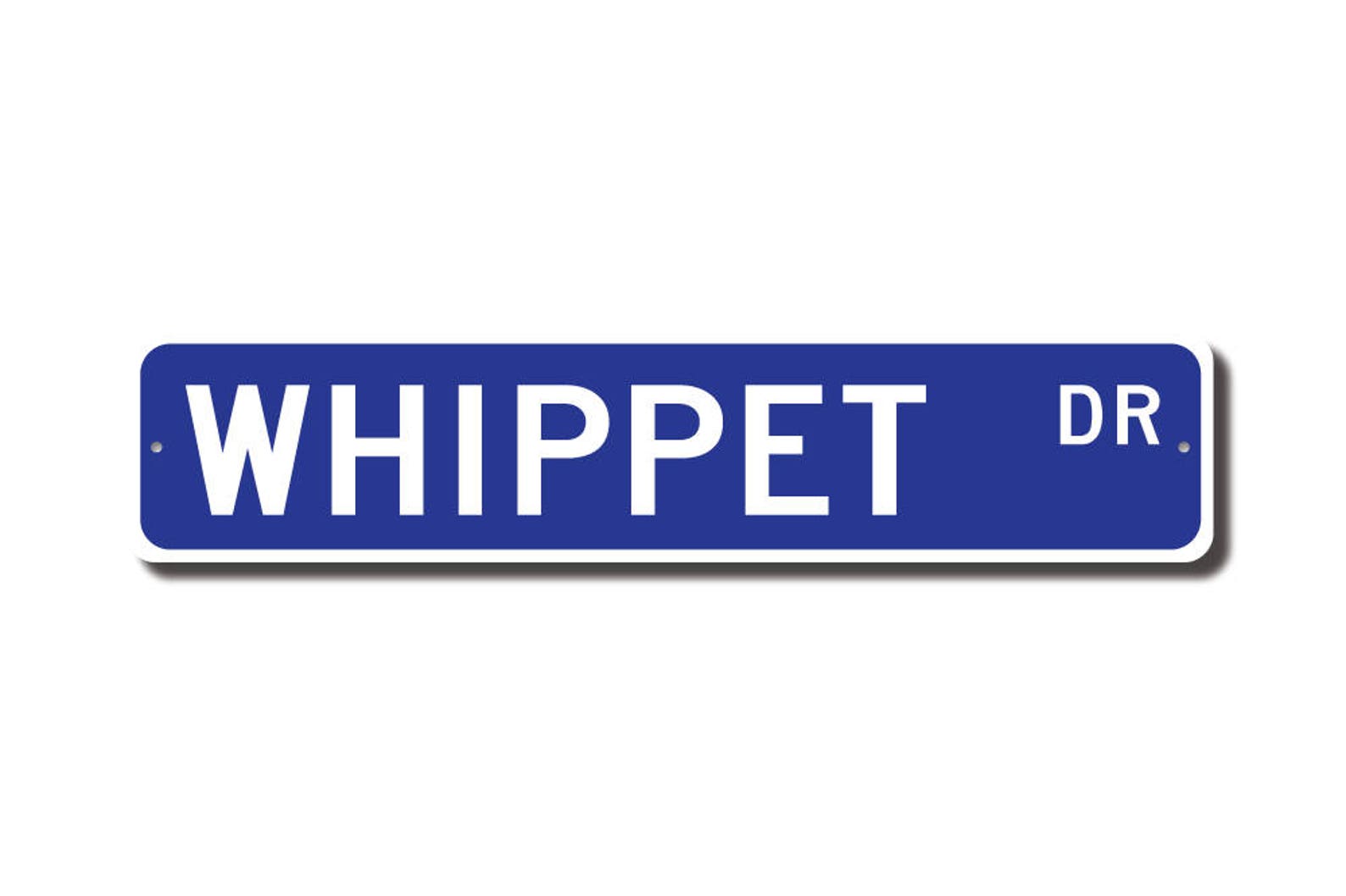 Whippet lovers check out this awesome street sign! This will make the perfect piece for any Whippet lover, or maybe you are a Whippet fan and looking for a cool decor piece. Made of premium aluminum it will stand the test of time. This sign will look great in any room, home den, cave, or office! Get this sign for your favorite Whippet aficionado !