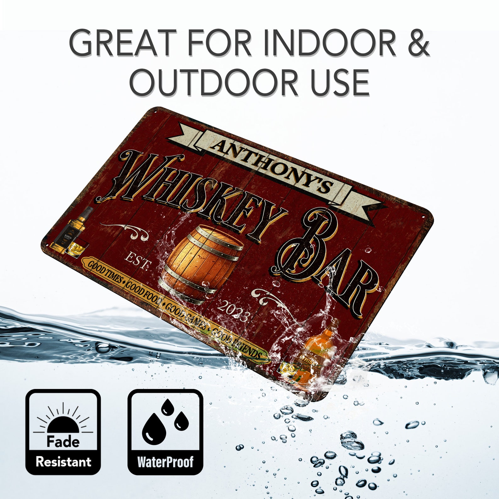 Be the first to review “Whiskey Bar Sign – Personal Metal Vintage Decor”