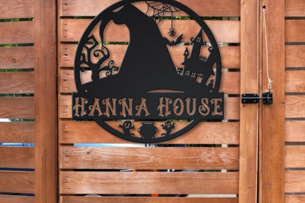 Be the first to review “Witch Hat Halloween Metal Sign – Haunted Welcome Decor”