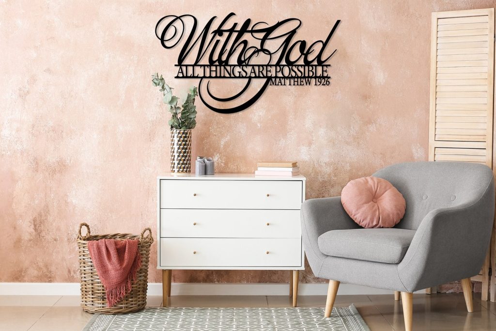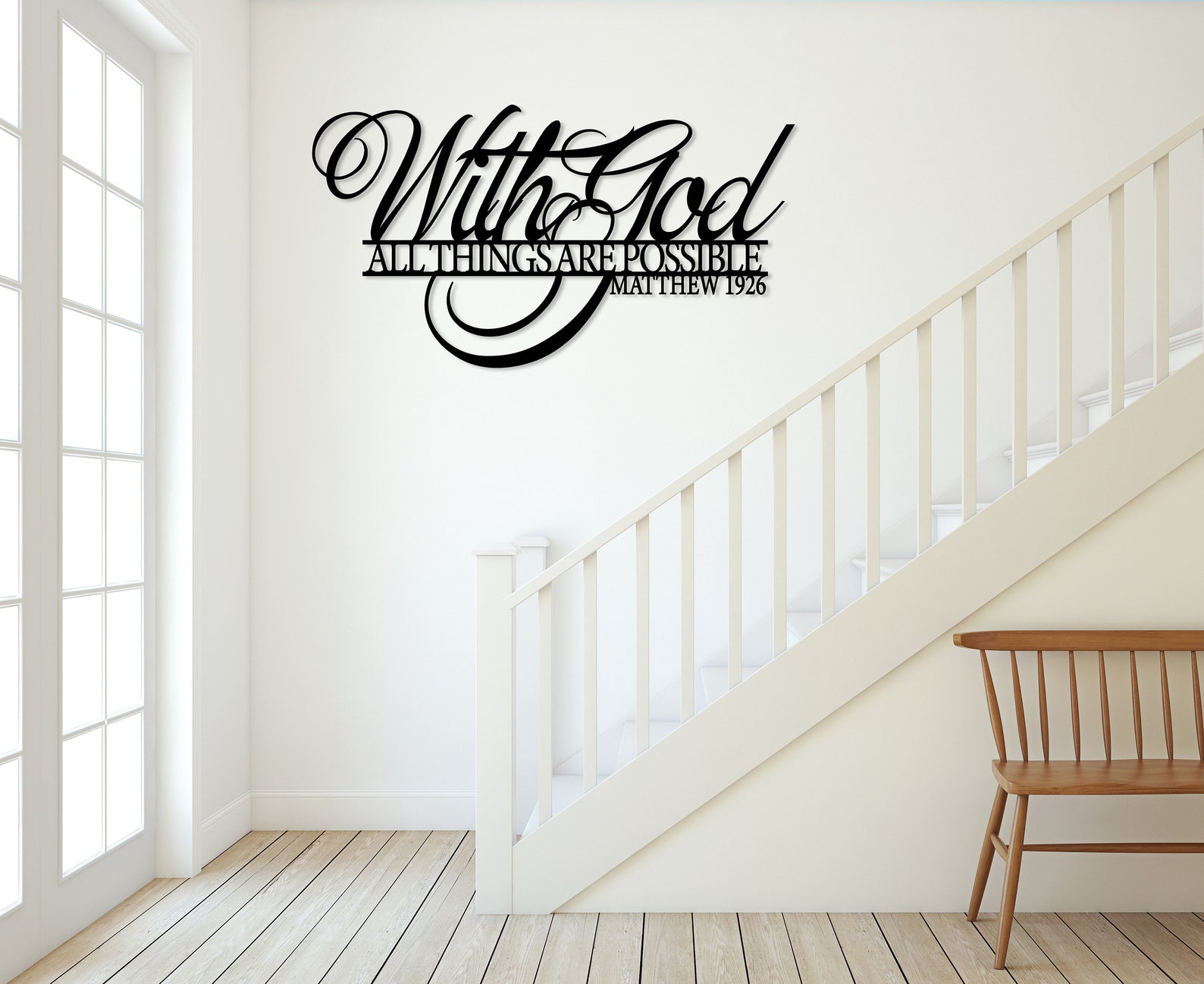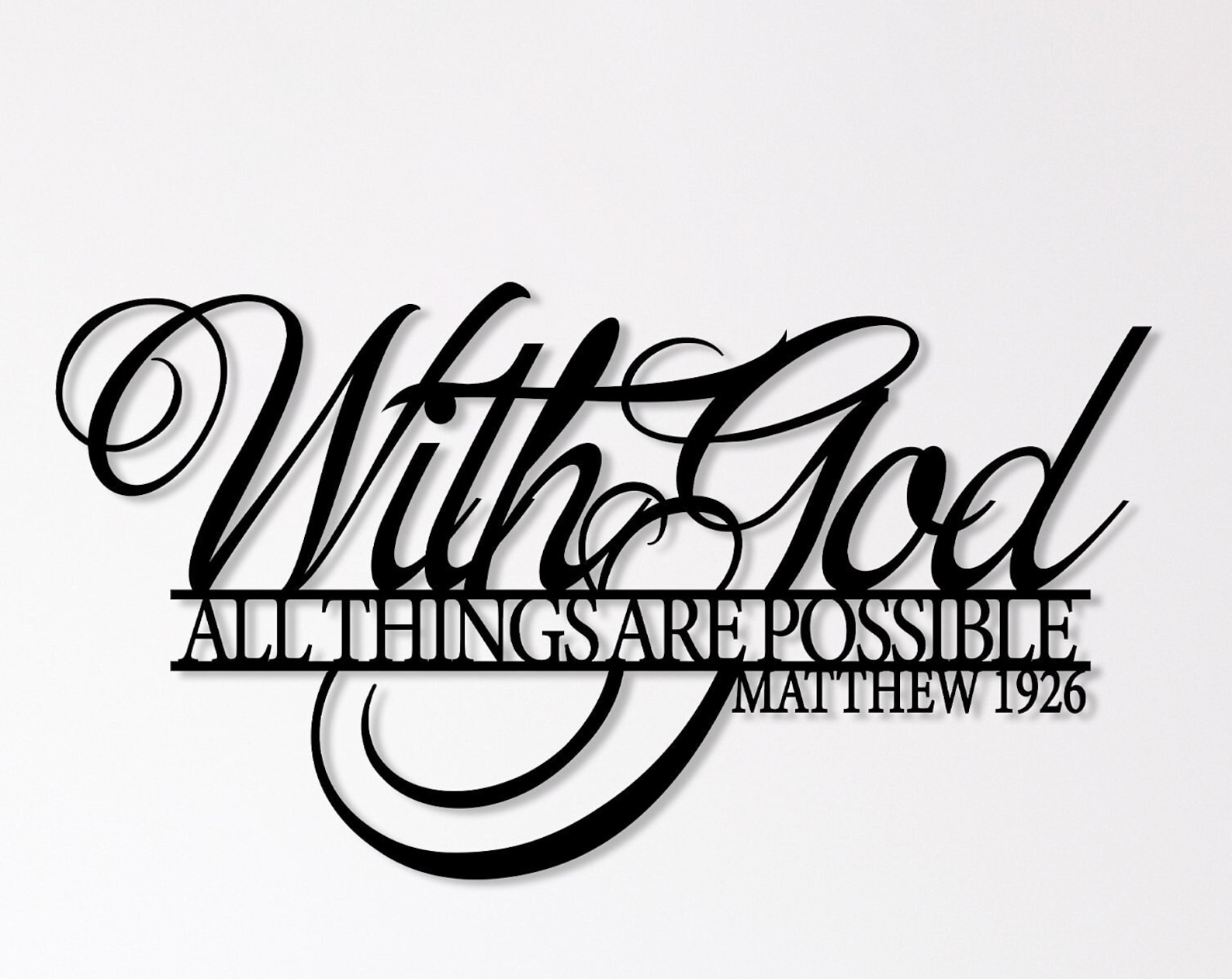 With God All Things Are Possible Metal Wall Sign, Religiosus Scripture Sign, Christian Words, Bible Verse Sign,Farmhouse Decor,Matthew 19:26