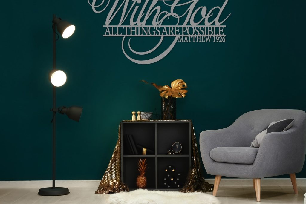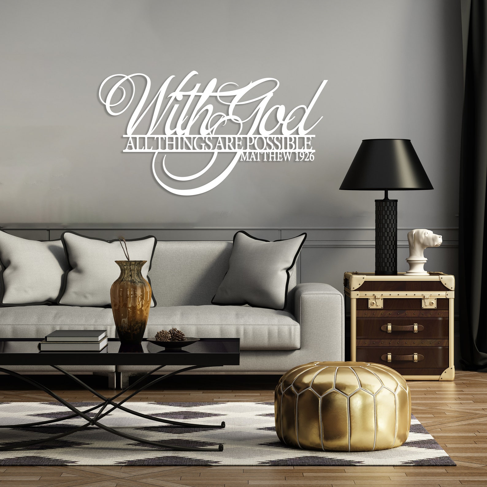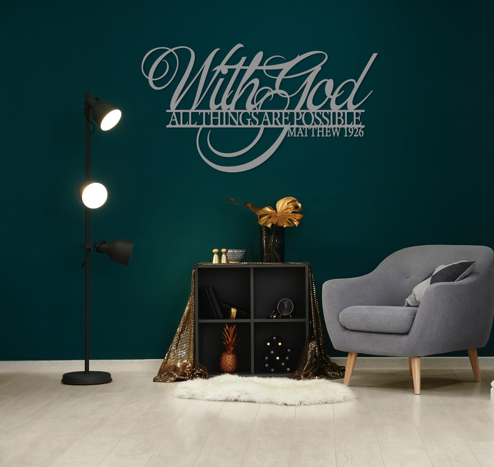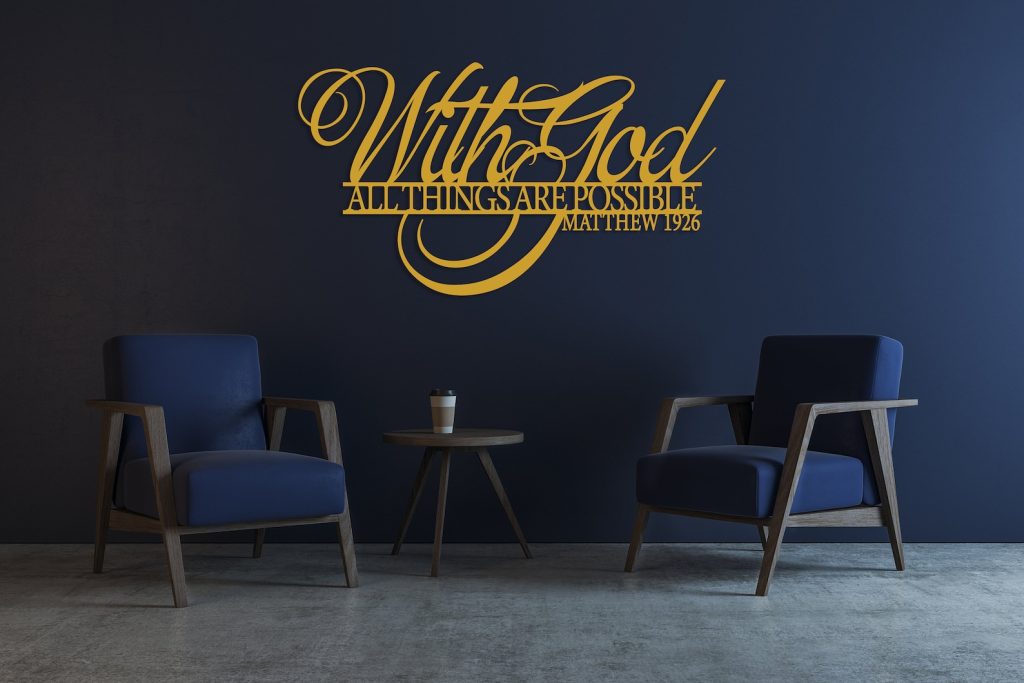 With God All Things Are Possible Metal Wall Sign, Religiosus Scripture Sign, Christian Words, Bible Verse Sign,Farmhouse Decor,Matthew 19:26